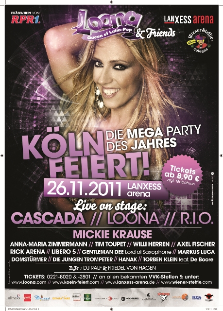 Am 26.11.2011 findet in der Kölner LANXESS-Arena Kölns größte Party statt. Mehr als 17 Bands und Künstler garantieren einen heißen Abend lang gute Laune, Party-Spaß und Sommerfeeling mitten im Herbst. Bis zum 25. Oktober 2011 haben nun die Fans der Fortuna die Chance, vier Tickets zum Preis von dreien zu ergattern. Es ist ganz einfach: Ihr müsst nur beim Ticketshop (Willy-Brandt-Platz 2, 50679 Köln) und telefonisch unter der 0221-8020 das Kennwort "Fründe-Ticket" nennen, schon kommt Ihr in den Genuss dieses speziellen Angebotes. Alle Infos zu dieser Veranstaltung findet Ihr hier.