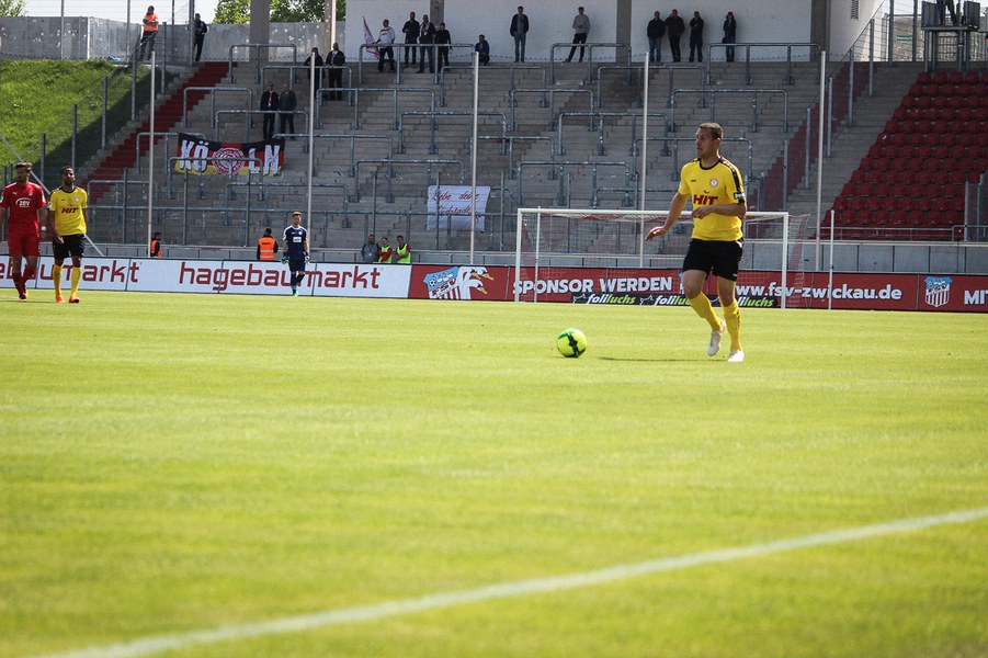 Der Partie zwischen der Fortuna und dem FSV Zwickau war es in der Anfangsphase anzumerken, dass alle sportlichen Kriterien schon im Voraus geklärt waren. Die Zuschauer bekamen in der ersten Viertelstunde eine zerfahrene Partie zu sehen. Für die Kölner nahm erstmals Thomas Bröker maß, zog aus rund 18 Metern mit links ab, aber Cichos parierte (16.). Es war aber eine Partie auf unterdurchschnittlichem Niveau. So suchte das Stadion Zwickau nach etwas Aufregendem, als Koljic der Ball im Sechzehner an die Hand sprang. Aber die Pfeife von Markus Wollenweber blieb stumm (18.). Die Fortuna hatte nach einer knappen halben Stunde Probleme im geordneten Spielaufbau. Man tat sich schwer, den Ball von der Abwehrreihe in die Angrifflinie zu bekommen. So gelang es der Elf von Uwe Koschinat nicht, mit zwingenden Aktionen in den Strafraum der Schwäne zu kommen. Gegen Ende der ersten Halbzeit zog Koschinat Maik Kegel etwas nach hinten, damit der Spielmacher mehr Zugriff auf die Partie bekommen konnte. Das belebendste Element des Kölner Angriffs war jedoch Thomas Bröker, der einige Flanken von der rechten Seite brachte und mit einem Kopfball auf das Tor der Zwickauer noch einmal so etwas wie Gefahr auf Torwart Cichos ausüben konnte (40). Fast mit dem Pausenpfiff konnte der FSV einen Angriff dann aber plötzlich krönen. Nach einem präzisen Flugball kam Ronny König an den Ball, der davon proftierte, dass ein Fortune wegrutschte. So konnte er aus kurzer Distanz zur Zwickauer Pausenführung einschieben (45.).