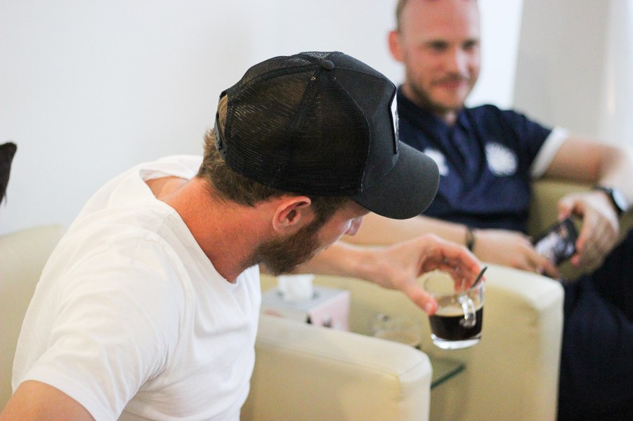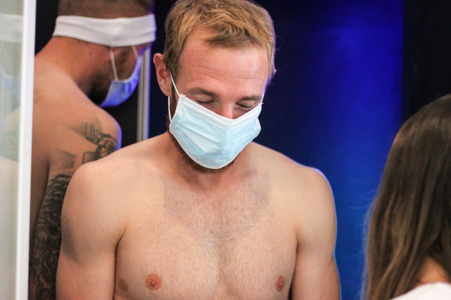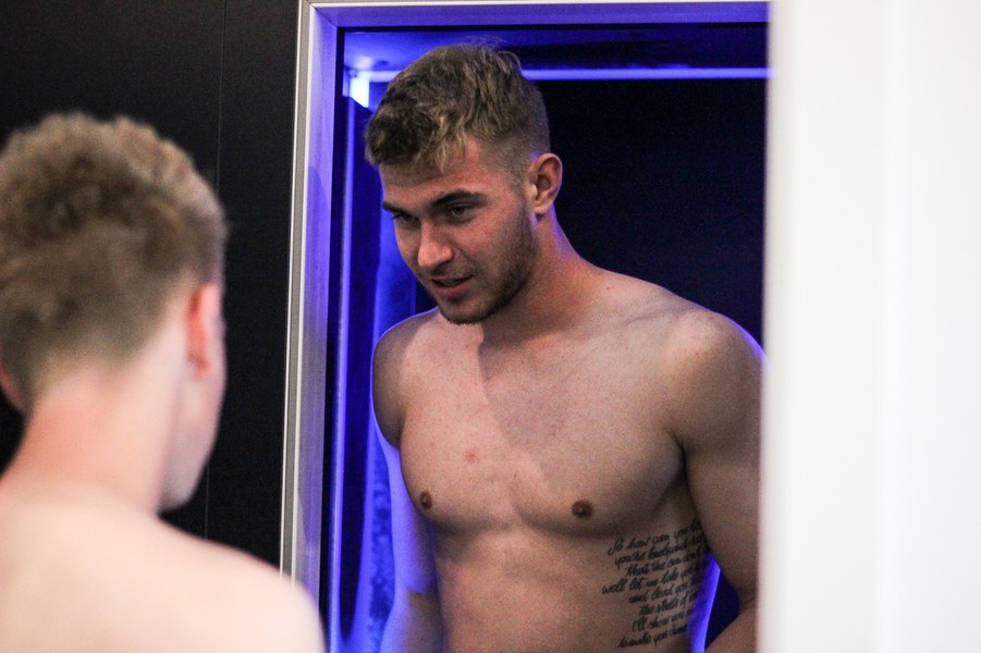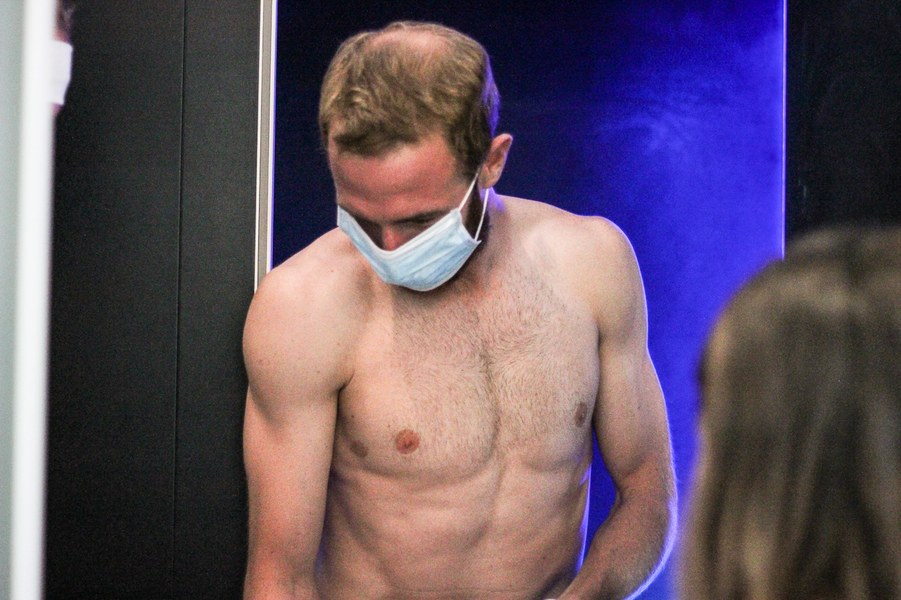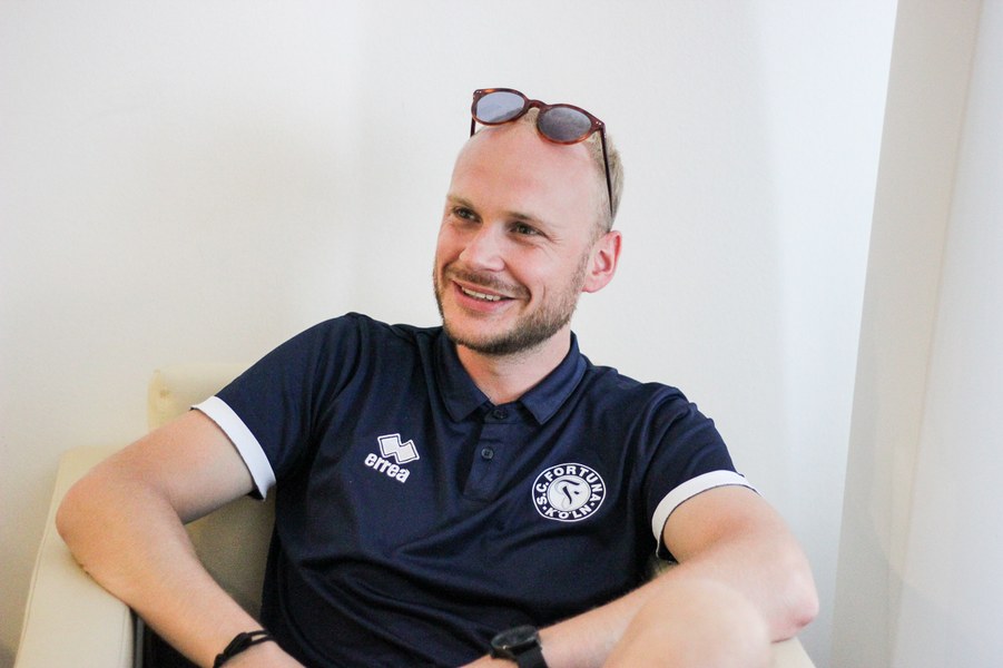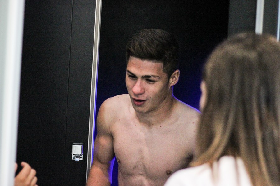 Nachdem es die Fortunen zunächst eine Minute lang bei -1° Celsius aushalten mussten, ging es in eine zweite Kammer. Hier warteten für drei Minuten -100° Celsius auf Ernst, Hartmann, Uaferro und Co. „In der Kammer entsteht eine angenehmen Kälte, die die obere Schicht des Körpers abkühlt. Dadurch werden die Blutgefäße und das Immunsystem gefordert. Der Temperaturwechsel bewirkt dabei eine Stärkung des Herz-Kreislauf- und Immunsystems, sodass eine kurze Behandlung schon ausreicht“, beschreibt Christian Osebold, Leiter der medizinischen Abteilung, den Effekt. „Ich habe mich gefühlt wie ein Eisbonbon von innen“, beschrieb Dominik Ernst die Behandlung mit einem Augenzwinkern. „Von außen fühlt man sich nicht so kühl an, aber innerlich hat es schon ein wenig gekribbelt“, so der Rechtsverteidiger weiter. Für alle Akteure war die Temperatur dabei nicht unangenehm. So hätten einige Fortuna-Profis auch länger in der Ganzkörperkältekammer bleiben können. „Vier Minuten reichen schon aus, um erste Effekte zu haben. Natürlich lebt auch diese Behandlung von der Regelmäßigkeit, aber richtig angewandt reduziert es Gelenkbeschwerden, beschleunigt Regenerationsprozesse und erhöht dadurch die Leistungsfähigkeit. Außerdem stärkt es u.a. das Immunsystem und verbessert das Wohlbefinden“, erhofft sich Osebold therapeutische Effekte. „Wir sind Herrn Prof. Dr. med. Kurscheid sehr dankbar, dass wir diese Ganzkörperkältekammer nutzen können und schicken unsere Jungs jetzt regelmäßig zweimal die Woche zur Praxis in die Bonner Straße“, so Osebold weiter.