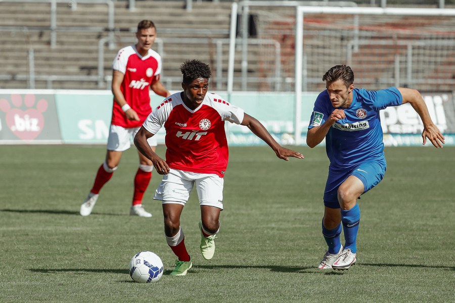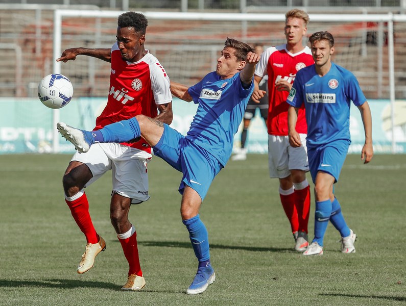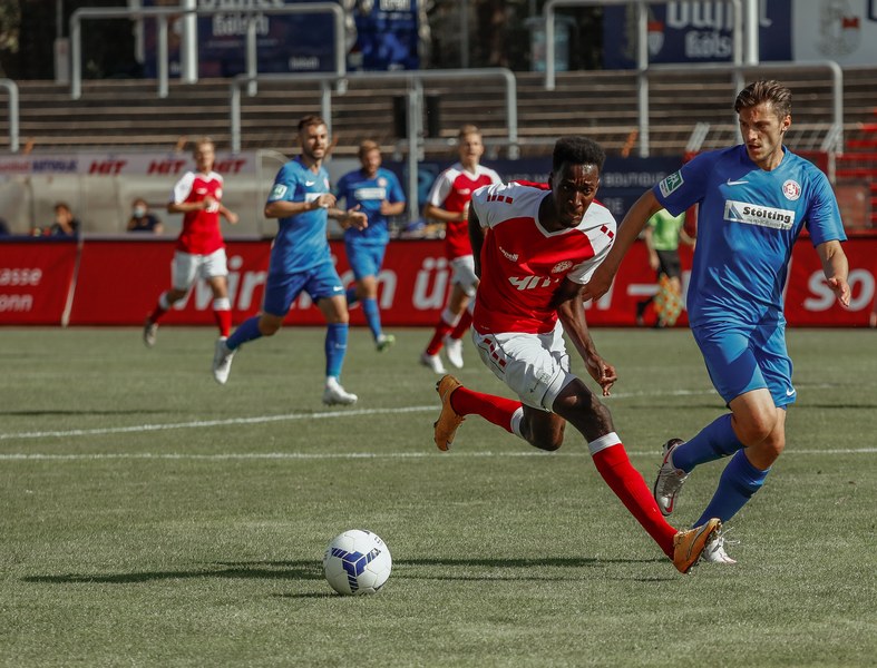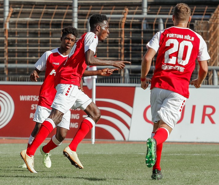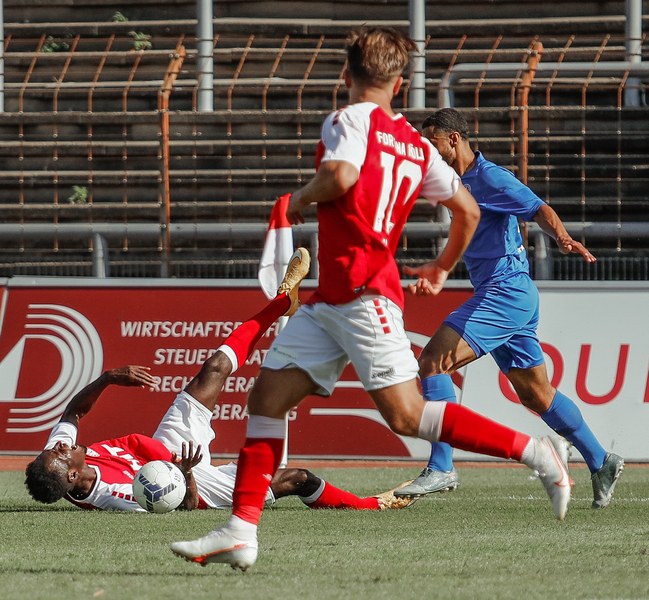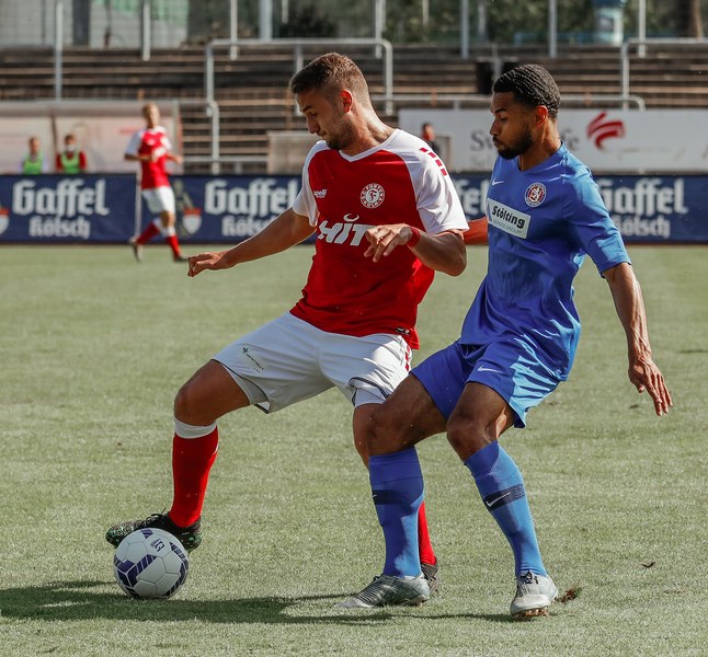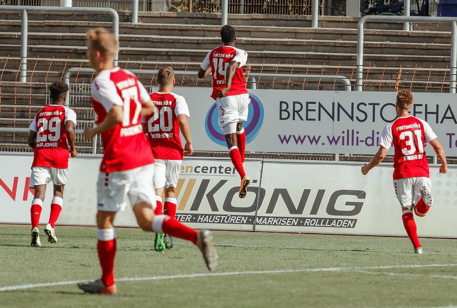 In der zweiten Hälfte war zunächst wieder die Fortuna am Drücker. Erst war es Ubabuike (47.) und kurz darauf Salman (50.), die beide zu spät den Abschluss fanden. In der 52. Minute war es erneut Salman, der mit einem Kopfball im Sechzehner Torwart Lübcke prüfte. Die folgenden Minuten waren von einigen weiteren guten Chancen unserer Fortuna gezeichnet. Owusu und Günther-Schmidt setzen aber den Ball knapp neben und über das Tor. Dann ein Aufschrei im Südstadion. Mike Owusu wurde in der 57. Minute im Strafraum zu Boden geschubst. Der Pfiff des Schiedsrichters blieb nicht lange aus. Franko Uzelac trat zum fälligen Elfmeter an, scheiterte aber am Keeper. Die Fortuna ließ sich von dem Rückschlag aber nicht unterkriegen und erspielte sich weiterhin zahlreiche gute Chancen und belohnte sich schließlich für den Aufwand. In der 69. Minute war es dann Hamza Salman, der von der Strafraumgrenze mit einem sehenswerten Schuss den 2:1 Führungstreffer erzielte. Quasi im Gegenzug egalisiert Beyhan Ametov mit einem weiteren Fernschuss die Führung der Fortuna in der 71. Minute. Fortuna behielt den Sieg jedoch im Blick und baute Druck auf den Gegner auf. Nach einer Flanke von Nadjombe auf Salman, der den Ball auf Ubabuike verlängerte, legte dieser quer auf Owusu der zum 3:2 traf (74.). Dies bedeutete die erneute Führung der Fortuna. In der 75. Minute war es dann soweit: Jan Luca Rumpf gab sein Debüt für die Fortuna und wurde für Francis Ubabuike eingewechselt. Nach 84 Minuten war dann auch für Julian Günther-Schmidt der Arbeitstag zu Ende. Er wurde durch Roman Prokoph ersetzt. Mit viel Einsatz holte der frische Mann auf dem Platz kurz nach seiner Einwechslung eine Ecke raus. Aus dieser resultierte dann der erste Kopfball von Jan-Luca Rumpf , welcher allerdings über dem Tor landete. In der 87. Minute kam dann Batuhan Özden zu einigen Spielminuten, indem er für den Torschützen zum 3:2 Mike Owusu eingewechselt wurde. Kurz darauf ertönte auch der Pfiff des Schiedsrichters. Ein Spiel mit einer turbulenten zweiten Halbzeit ging vorüber und hatte ein gutes Ende für die Jungs aus der Südstadt. Mit nun zwölf Punkten aus vier Spielen bleibt man vorerst weiterhin Tabellenführer.