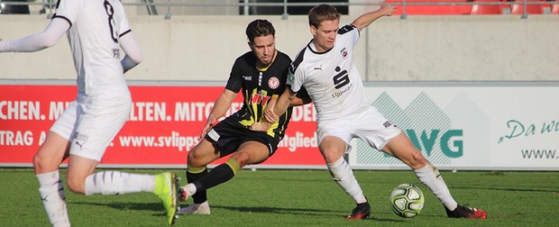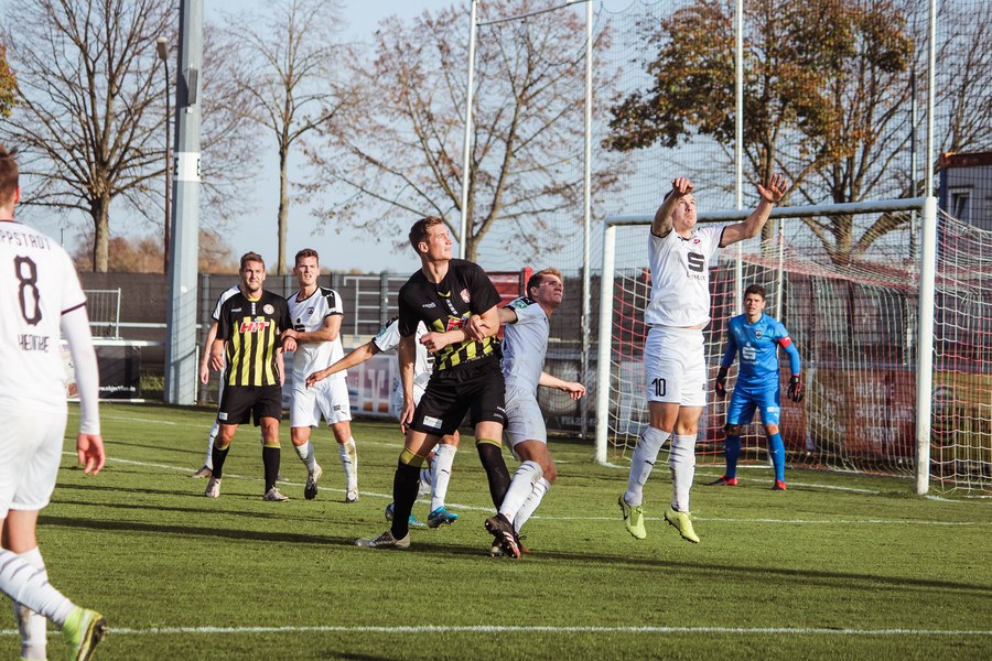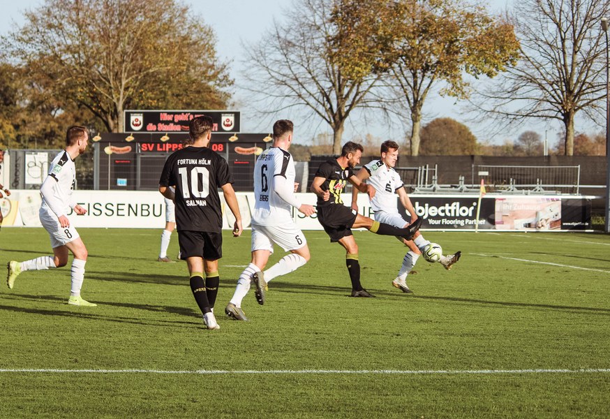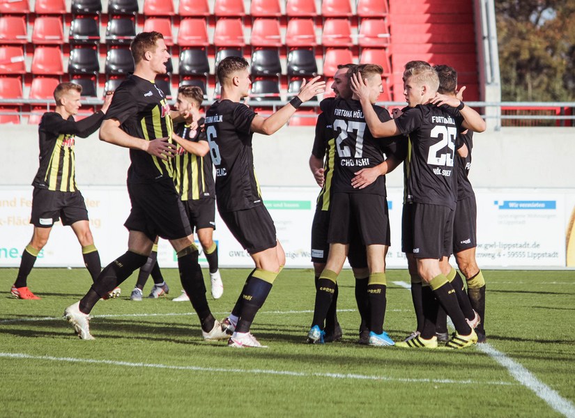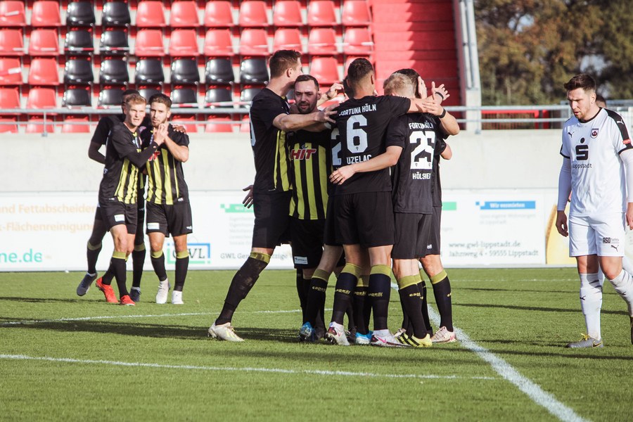 Nachdem die Fortuna in den vergangenen Spielen oftmals einen Rückstand hinnehmen musste, erwischte das Team von Alexander Ende diesmal einen besseren Start. Mail Kegel verlagerte mit einem sauberen Pass das Spiel und nahm Nico Ochojski mit. Der Abwehrmann hatte mit seiner Flanke den Blick für Hamza Salman, der im Strafraum mit dem Kopf noch einmal auf Günther-Schmidt ablegte. Fortunas Nummer 20 nahm den Ball volley und traf ins lange Eck zur 1:0-Führung (6.). Fortunas Motoren waren auf Angriff gestellt, doch sowohl Hölscher und Ubabuike (13.) als auch Ubabuike im Verbund mit Günther-Schmidt (16.) brachten den Ball zunächst nicht gefährlich auf das Tor. Anders sah dies nach 18 gespielten Minuten aus. Prokophs abgeblockter Schuss landete vor den Füßen von Günther-Schmidt, der nochmal einen Haken schlug und den Ball mit einem satten Schuss auf das Tor brachte. Lippstadt klärte jedoch in höchster Not zur Ecke. Danach wurde das Spiel etwas zerfahrener. Fortuna bliebt zwar spielbestimmend, ließ den Gegner aber durch einige Unsauberkeiten bis vor das Tor von Rauhut vordringen. Aber auch in dieser Phase fand die Fortuna die richtige Antwort. Poggenberg schaltete sich in der Offensive ein und brachte von links eine Flanke scharf vor das Tor. Salman verpasste in der Mitte mit dem Kopf, so landete der Ball aber direkt auf dem Fuß von Roman Prokoph, der das Spielberät unter die Latte setzte (31.). Dann wurde es brenzlich vor dem Tor von Kevin Rauhut. Poggenberg klärte in höchster Not und der Ball landete vor den Füßen von Prokoph. Der Gegenspieler des Stürmers ging zu Boden und der Schiedsrichter zeigte auf den Punkt. Nachdem der Gastgeber im Gespräch erklärte, dass Prokoph den Ball spielte, nahm der Schiedsrichter seine Entscheidung wieder zurück (39.). Ein großes Zeichen im Sinne des Fair Plays! Kurz vor der Pause probierte es die Fortuna dann noch einmal mit einem langen Ball auf Ubabuike. Der schnelle Fortune hielt zwar die Fußspitze rein, kam aber nicht mehr vor Keeper Balkenhoff an den Ball (45.). So ging es mit der 2:0-Führung in die Pause.