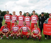 Vor dem Freundschaftsspiel gegen den TSV 1920 Geismar gruppierten sich die Neuzugänge 2009/2010 zum ersten gemeinsamen Bild. Hintere Reihe von links: Co-Trainer Rüdiger Hoppe, Zami Khalil, Tomas Tomanek, Benjamin Venekamp, Alexander Ende, Lars Marten, Trainer Matthias Mink, Manfred Schuppener (Fortuna-Fan aus Hessen). Vordere Reihe von links: Cengiz Can, Tevfik Furucu, Mario Schwarz, Abdelkader Maouel. Es fehlt Nuno Sanches, der aufgrund einer...