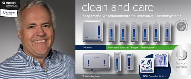 In der Zwischenzeit ist viel passiert. Gemeinsam mit einem in Deutschland ansässigen Hersteller wurden eigene, berührungsfrei funktionierende Handtuch-, Seifen- und Desinfektionsmittelspender entwickelt. Auch sparsame Toilettenpapier- und Duftspender runden das Sortiment ab. Mittlerweile hat die ulticom-Gruppe mehr als 100.000 Waschraumspender bei zufriedenen Kunden montiert. Sie sind innovativ, dienen der Wohlfühl-Hygiene, der Sparsamkeit und somit auch der Kosteneinsparung. Qualitativ hochwertige Verbrauchsmaterialien sind selbstverständlich.