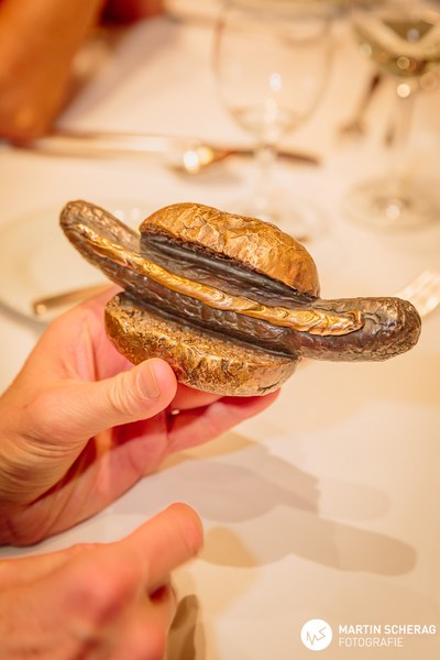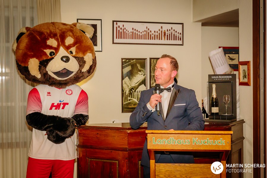Nach einem Sektempfang und der Begrüßung durch Erhard Schäfer führte Benjamin Bruns, Mitglied der Geschäftsleitung bei der Fortuna Spielbetriebsgesellschaft, gekonnt durchs Programm. Dabei gab es einige Kuriositäten zu erleben: beispielsweise Cornel Wachter. Der Südstadtkünstler und Fortuna-Freund hielt die Laudatio für Hein Wimmer, der nach der unvergesslichen Helge Ulonska (2017) und Dr. Rolf Giesen (2018) als dritte Person mit der „Bronzenen Stadionwurst“ ausgezeichnet wurde. Dazu hatte Wachter in seinem Beutel extra ein paar Erinnerungen aus der Fortuna-Vergangenheit mitgebracht und rief damit den einen oder anderen Schmunzler bei den rund 200 Gästen hervor.