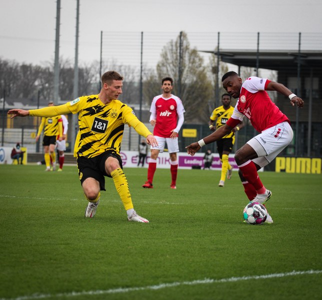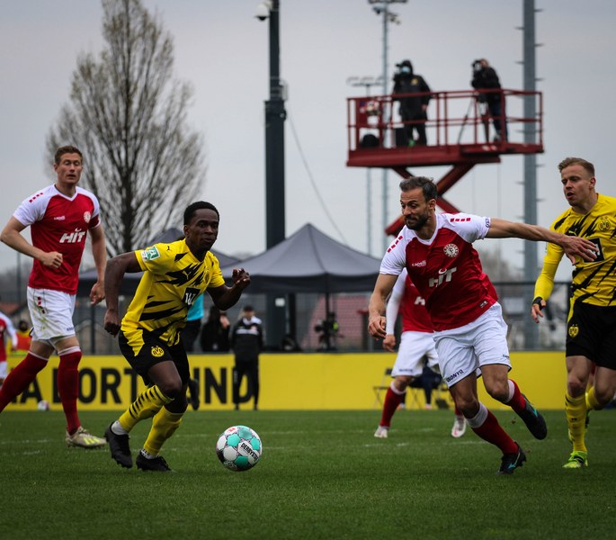 Am heutigen Ostersonntag gastierte die Mannschaft von Alexander Ende im Fußballpark BVB Hohenbuschei. Im Vergleich zum Spiel unter der Woche gegen Alemannia Aachen rotierte der Trainer drei mal. Für Itter, Najar und den verletzten Hölscher starteten Poggenberg, Salman und Brandenburger.