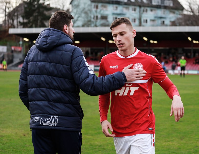 Die erste Chance der zweiten Halbzeit hatte Franko Uzelac nach einer Ecke von Nedim Pepic. Sein Kopfball verfehlte das Tor der Knappen aber um einige Meter. Im Gegenzug prüfte der Schalker Sandro Plechaty den toll parierenden Schlussmann Kevin Rauhut aus gut 20 Metern (52.). Fortuna-Trainer Thomas nutzte seine zweite Auswechselmöglichkeit und brachte Hamza Salman für Nico Ochojski in die Partie (55.). Kevin Weidlich übernahm die Position des rechten Verteidigers, Mike Owusu wechselte auf den rechten offensiven Flügel und Hamza Salman gliederte sich dafür in das zentrale offensive Mittelfeld ein. Die Rotation zeigte schnell Wirkung – Mike Owusu fasste sich ein Herz und zog aus über 20 Metern einfach mal ab, sein Schuss traf aber nur den Pfosten (61.). Die Fortuna beherrschte in der zweiten Halbzeit bis dato das Spielgeschehen, alleine das so wichtige Tor wollte nicht gelingen. Auch nach einem Freistoß von Franko Uzelac konnte Kevin Weidlich den Nachschuss nicht auf das Tor der Königsblauen bringen (68.). In der 70 Minute gelang den Gästen nach einer Ecke die 0:1-Führung durch Jan Luca Schuler. Thomas Stratos reagierte sofort und wechselte Kelvin Lunga für den starken Suheyel Najar ein (71.). Doch dann wurde es noch bitterer aus Fortuna-Sicht. Nachdem Franko Uzelac den Schalker Randy Gyamenah im Strafraum foulte, verwandelte der Ex-Fortune Blendi Idrizi den fälligen Strafstoß zum 0:2 für den Schalker Nachwuchs (80.). Zum Ende der Partie nutze Fortuna-Trainer Thomas Stratos seine letzte Auswechselmöglichkeit und wechselte Georgios Touloupis für Franko Uzelac ein. Doch das war die letzte nennenswerte Aktion des Spiels und somit verlor der SC Fortuna Köln gegen die U 23 vom FC Schalke 04 mit 0:2 (0:0).