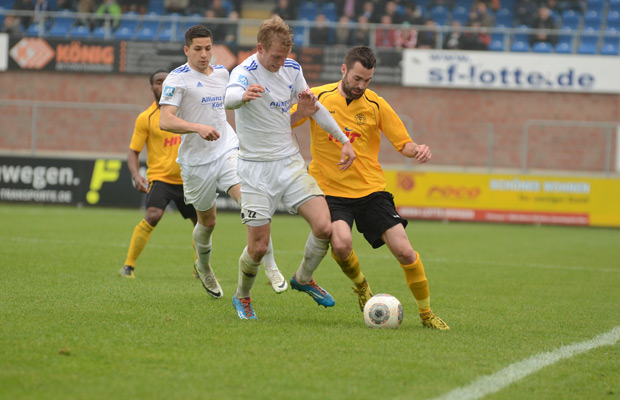 Vor 1.816 Zuschauern verliert die Fortuna das Spitzenspiel der Regionalliga West mit 0:1 (0:0) bei den Sportfreunden Lotte. In einem hochklassigen Spiel hatten die Sportfreunde durch einen abgefälschten Distanzschuss von Grieneisen (81. Min) das glücklichere Ende für sich. Die Kölner hatten dabei über das gesamte Spiel gesehen die besseren Möglichkeiten, verpassten es aber daraus Kapital zu schlagen. Lotte konnte sich ebenfalls immer wieder gefährlich vor das Tor von Poggenborg kombinieren, schaffte es aber seltener für echte Torgefahr zu sorgen. In einer hektischen Schlussphase sah Andersen noch die gelb-rote Karte (90. Min). Durch den Sieg rückt die Elf von Michael Boris bis auf einen Zähler an Tabellenführer Fortuna Köln heran.