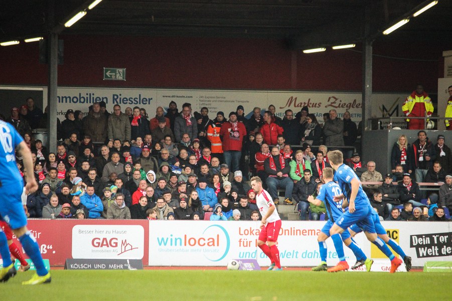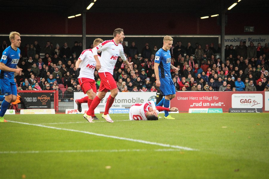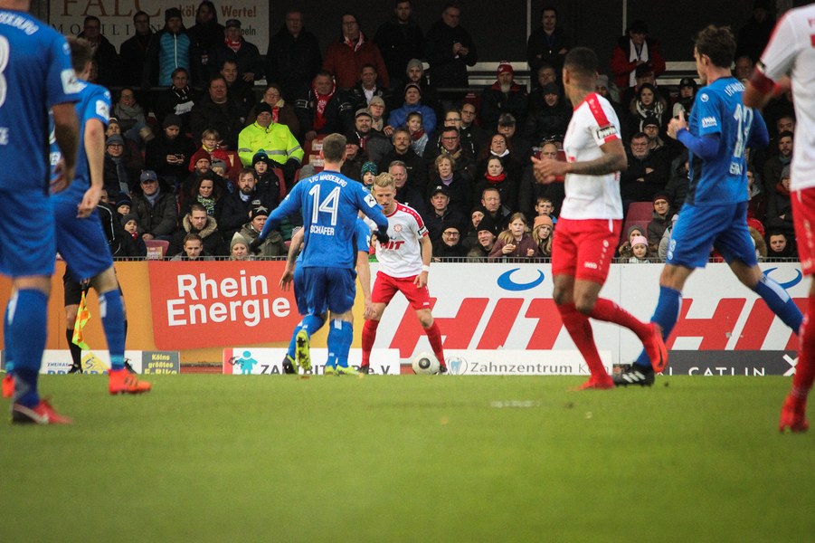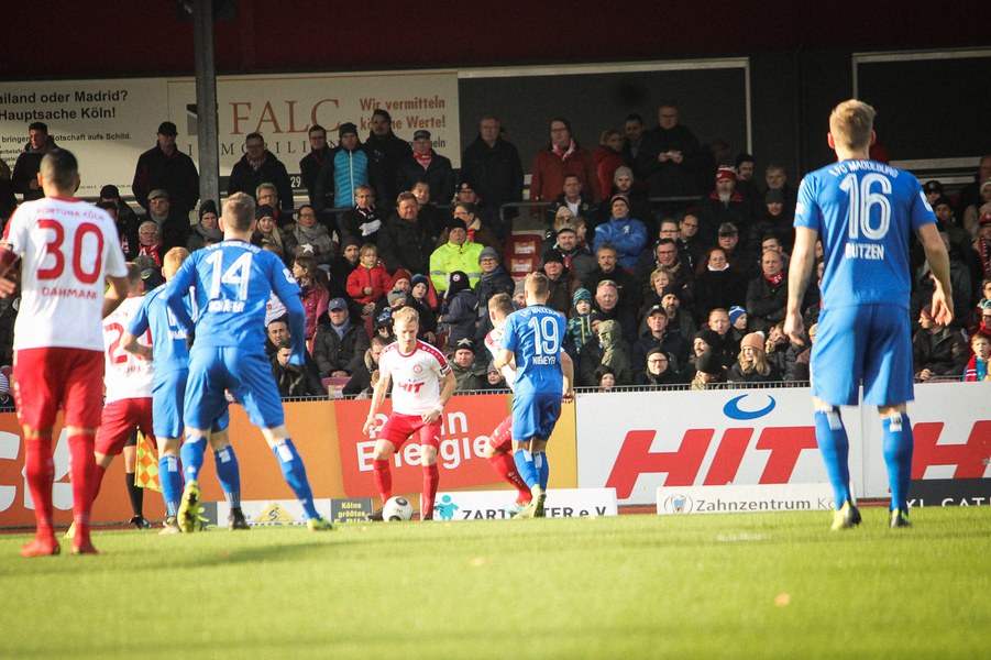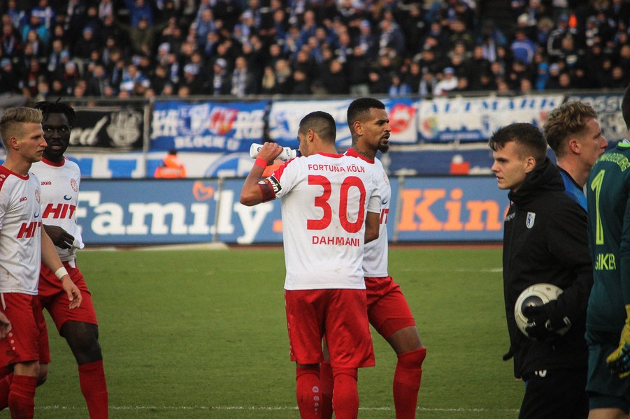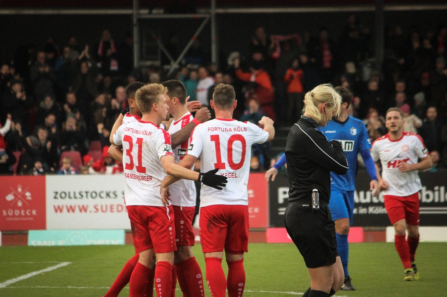 Beide Teams schlugen von Beginn an eine hohe Intensität im Südstadion an. So setzte man sich gegenseitig früh unter Druck und ließ dem anderen kaum Platz, um sich zu entfalten. Die Fortuna schaffte es häufiger mal den Strafraum zu attackieren, aber es war Magdeburgs Beck, der den ersten gefährlichen Torschuss verbuchte (5.). Die Fortuna hatte vorsichtige Annäherungen von Dahmani und Keita (10./13.). Es war aber schließlich der Gast, der die erste Unachtsamkeit eiskalt bestrafte: Nach langem Ball von Butzen tauchte Niemeyer frei vor Boss auf und ließ dem Kölner Keeper keine Chance (17.). Die Kölner antworteten mit Torschüssen von Kurt und Dahmani (20./21.). Man tat sich aber schwer in die Magdeburger Hälfte zu kommen, weil man früh am Spielaufbau gestört wurde. So war der FCM mit einem Kopfball von Beck und einem Freistoß von Niemeyer dem nächsten Tor näher (25./33.). Aus dem Nichts bot sich dann aber die Chance zum Ausgleich, als Kegel Scheu im Strafraum freispielte und der von Hammann gefoult wurde. Den fälligen Elfmeter verwandelte Keita-Ruel sicher (44.). Nachdem Brandenburger im Gegenzug ein Zuspiel von Niemeyer in höchster Not klärte (45.), ging es mit dem Remis in die Kabine.