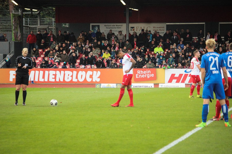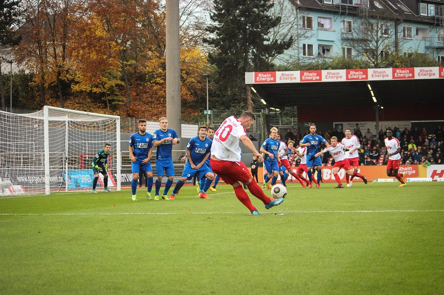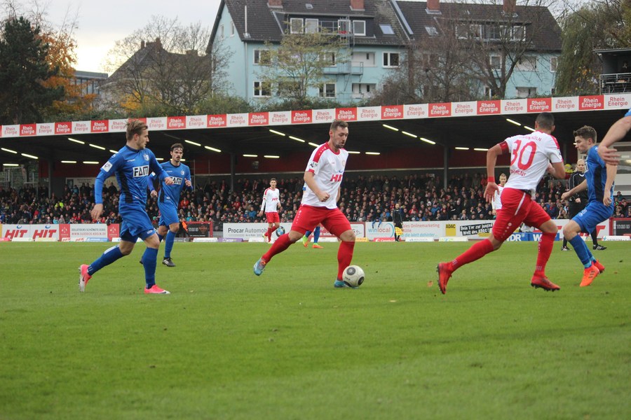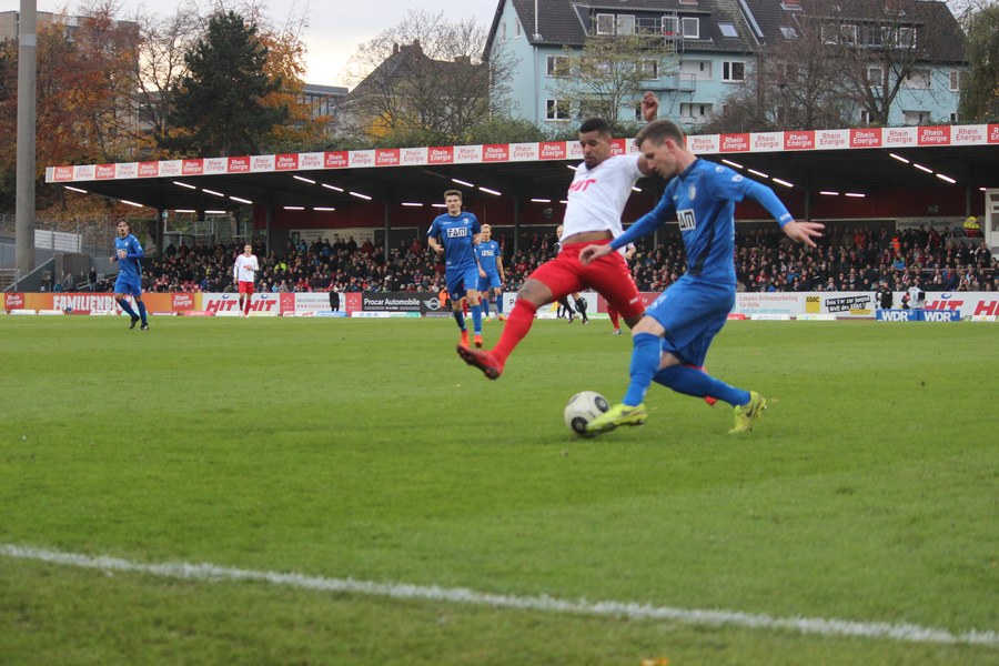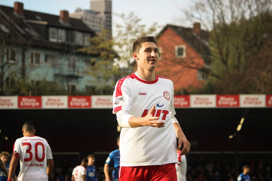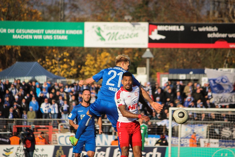 Beide Teams schlugen von Beginn an eine hohe Intensität im Südstadion an. So setzte man sich gegenseitig früh unter Druck und ließ dem anderen kaum Platz, um sich zu entfalten. Die Fortuna schaffte es häufiger mal den Strafraum zu attackieren, aber es war Magdeburgs Beck, der den ersten gefährlichen Torschuss verbuchte (5.). Die Fortuna hatte vorsichtige Annäherungen von Dahmani und Keita (10./13.). Es war aber schließlich der Gast, der die erste Unachtsamkeit eiskalt bestrafte: Nach langem Ball von Butzen tauchte Niemeyer frei vor Boss auf und ließ dem Kölner Keeper keine Chance (17.). Die Kölner antworteten mit Torschüssen von Kurt und Dahmani (20./21.). Man tat sich aber schwer in die Magdeburger Hälfte zu kommen, weil man früh am Spielaufbau gestört wurde. So war der FCM mit einem Kopfball von Beck und einem Freistoß von Niemeyer dem nächsten Tor näher (25./33.). Aus dem Nichts bot sich dann aber die Chance zum Ausgleich, als Kegel Scheu im Strafraum freispielte und der von Hammann gefoult wurde. Den fälligen Elfmeter verwandelte Keita-Ruel sicher (44.). Nachdem Brandenburger im Gegenzug ein Zuspiel von Niemeyer in höchster Not klärte (45.), ging es mit dem Remis in die Kabine.