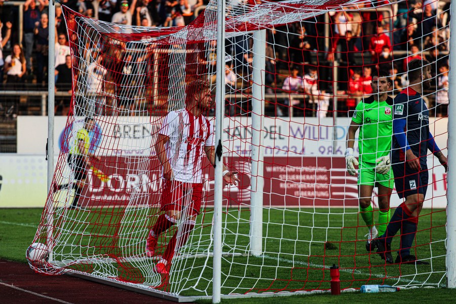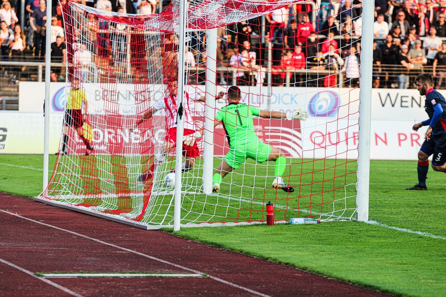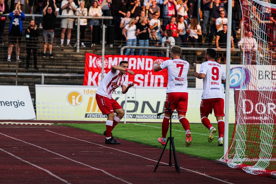 In der zweiten Halbzeit hielt sich das Spiel zunächst weiterhin im Mittelfeld auf, keines der Teams kam zwingend vor das Tor des anderen. In der 54. Minute gelangten die Gäste dann gefährlich vor das Tor der Fortuna, aber mit vereinter Kraft klärten die Südstädter. Danach waren die Gäste besser im Spiel und erspielten einige Chancen. Ab der 60. Spielminute übernahmen die Fortunen wieder die Kontrolle und versuchten das Abwehrbollwerk der Gäste mit schnellem Passspiel zu durchbrechen. Dabei spielten sie teilweise zu hektisch und verloren den Ball wieder, wobei die Ballverluste keine Folgen hatten In den letzten Minuten warf die Fortuna noch mal alles rein und kam einige Male gefährlich vor das Tor von Velichkov, ein Treffer aber, wollte nicht mehr gelingen. So müssen sich die Südstädter, trotz eines ordentlichen Auftritts mit nur einem Punkt zufriedengeben. Ein weiterer Wermutstropfen: mit Batarilo und Brandenburger mussten gleich zwei Spieler angeschlagen ausgewechselt werden.