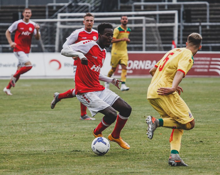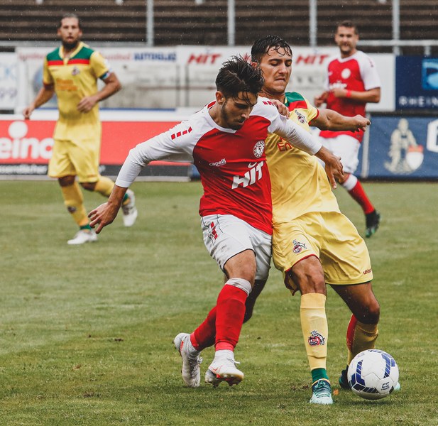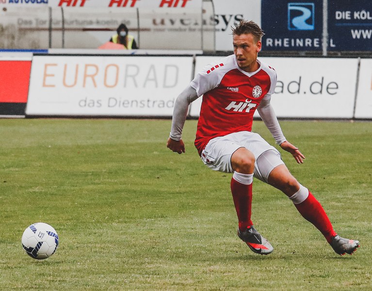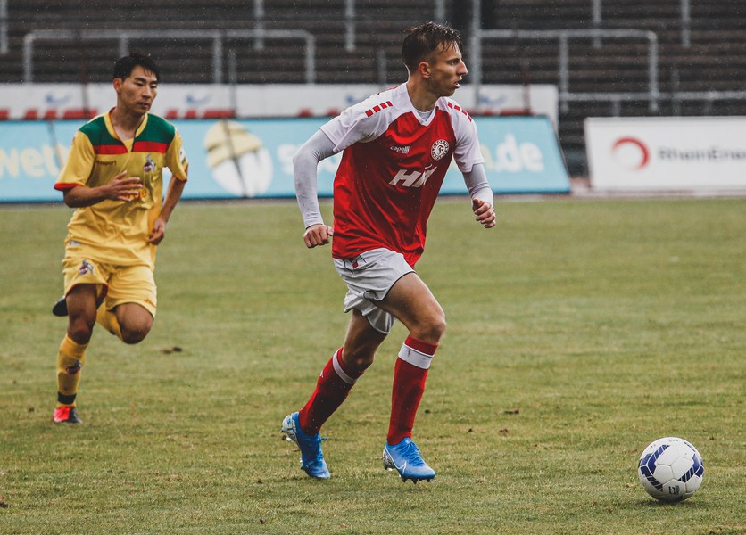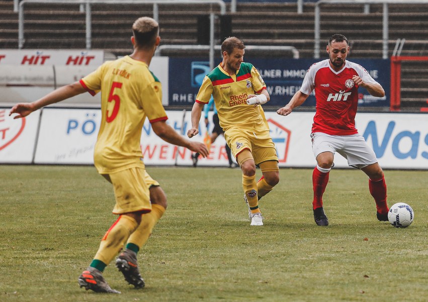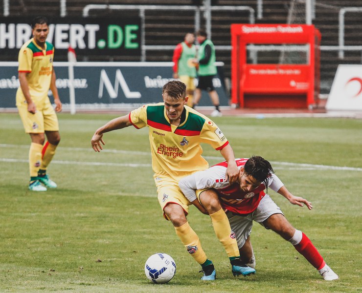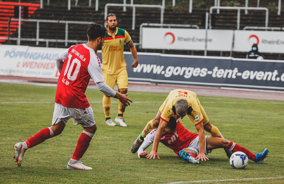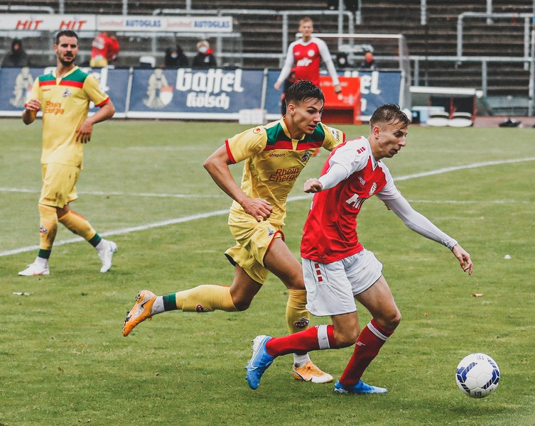 Die zweite Halbzeit startete so, wie die erste endete - nämlich mit Chancen für die Fortuna. Gleich zu Beginn fand Hamza Salman den Abschluss, traf allerdings nur weit über das Tor. In der 47. Minute scheiterte Ubabuike aus kurzer Distanz an Krahl. Quasi im Gegenzug konterte der FC über Christian Clemens, aber der Ball fliegt knapp am Tor vorbei. In der 48. Minute folgte dann eine schöne Kombination über Owusu, Brandenburger, Hölscher, die in Ubabuike seinen Abnehmer fand. Krahl konntrollierte jedoch erneut im Nachfassen den Ball. Owusu drängte in Richtung des gegnerischen Tores und konnte nur durch ein Foul gestoppt werden. Den fälligen Freistoß brachte der Kapitän Franko Uzelac flach vor das Tor des FC, wo Nico Brandenburger die Hereingabe nur um wenige Zentimeter verpasste (48.). Die folgenden Minuten waren geprägt von einigen Ballverlusten im Mittelfeld auf beiden Seiten und brachten so wenige klare Torchancen. In der 54. Minute wurde es dann laut im Südstadion. Francis Ubabuike kam bis zur Torauslinie und spielte den Ball halbhoch in den 5er. Die Fans unter den 930 Teilnehmern im Südstadion forderten einen klaren Handelfmeter, jedoch entschied sich der Schiedsrichter für einen Eckball, welcher allerdings für keine weitere Gefahr sorgen konnte. In der Folge ging es dann richtig schnell auf beiden Seiten. So brachten die Gäste in der 56. Minute den Ball auf den freistehenden Voloder, wessen Direktabnahme im Toraus landete. Auf der anderen Seite brach Julian Günther-Schmidt bis zur Torauslinie durch und legte den Ball quer, doch der Kölner Keeper fing den Ball ab. Nach 59 Minuten war es erneut Günther-Schmidt der bis zur Torauslinie gelang und dann auf den diesmal im 5er stehenden Salman querlegte. Salman schloss zentral ab und brachte den Ball im Tor der Gäste zur verdienten Führung unter. In der 63. Minute wurde es dann laut im Südstadion. Maik Kegel gab nach über anderthalb Jahren sein Comeback und ersetzte den heute erneut starken Timo Hölscher. Ein bewegender Moment für Zuschauer und Team. In den Folgeminuten erstarkte der 1.FC Köln und spielte sich einige Chancen heraus, die aber von Uzelac vereitelt wurden. In der 71. Minute gab es dann erneut eine schöne Kombination von Ochojski, Kegel und Owusu, welcher mit seiner Flanke in den Strafraum jedoch keinen Abnehmer fand. Nach 75 Minuten kam es dann zu einer Großchance auf Seiten der Gäste, die vorerst geklärt werden konnten. Dann aber doch der Schock für die Fortuna. In der 79. Minute zielte Vincent Geimer von der linken Seite auf das Tor und traf etwas glücklich zum 1:1 Ausgleichstreffer. Der Ball wurde noch leicht durch Nico Ochojski abgefälscht, weshalb Kevin Rauhut dem Ball nur noch hinterher schauen konnte. In den letzten zehn Minuten machten die Fortunen nochmal gehörig Druck, scheiterten jedoch mehrfach am gegnerischen Torwart. So auch nach einer Ecke von Maik Kegel, die Krahl noch im Nachfassen entschärfen konnte. Am Ende blieb es bei einem 1:1 gegen einen starken 1. FC Köln. In der nächsten Woche geht es dann mit dem Auswärtsspiel bei den Sportfreunden aus Lotte weiter.