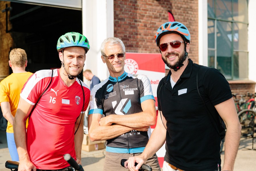 Das Partner-Event der Fortuna erfreute sich auch in diesem Spätsommer großer Teilnahmelust: Die insgesamt 40 Personen der 18 teilnehmenden Partnerunternehmen wurden durch die Fahrräder und Materialien des Zweirad-Center Prumbaum und der eurorad Deutschland GmbH in Köln-Dellbrück bestens für die anstehenden Routen ausgestattet. Der sportliche Nachmittag begann um 17:30 Uhr indem Benjamin Bruns, Leiter Sponsoring und Vertrieb bei Fortuna Köln, die anwesenden Vertreter der jeweiligen Partnerunternehmen begrüßte. Im Anschluss daran ging es auf den Sattel und die Teilnehmer teilten sich in zwei Gruppen auf. Wer wollte, konnte sich der Gruppe A anschließen und sich der anspruchsvolleren Sport-Tour stellen, die durch hügeliges Terrain verlief. Als Alternative gab es die nicht weniger schöne Genießer-Route, bei der es etwas entspannter zuging. Beide Touren eigneten sich bestens, um die Vorteile des E-Bike-Fahrens kennenzulernen. Gegen 20:30 Uhr fanden sich alle Radfahrer wieder auf dem Gelände des Zweirad-Center Prumbaum ein. Erholung gab es in Form von kühlen Getränken und leckerem Grillfleisch. Neben dem Sportlichen stand am Abend dann vor allem der gemeinsame Austausch im Vordergrund, durch den sich das Fortuna-Netzwerk noch enger verflechten konnte. Gegen 23 Uhr klang der Abend dann allmählich aus.