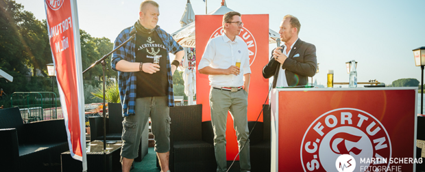 Nach der Eröffnungsrede von Geschäftsführer Ben Bruns begrüßten mit Sebastian König und Matze Bauer die Gastgeber des Abends ihre Gäste. Zuletzt folgte die Vorstellung vom neuen Fortuna Trainer Alexander Ende.
