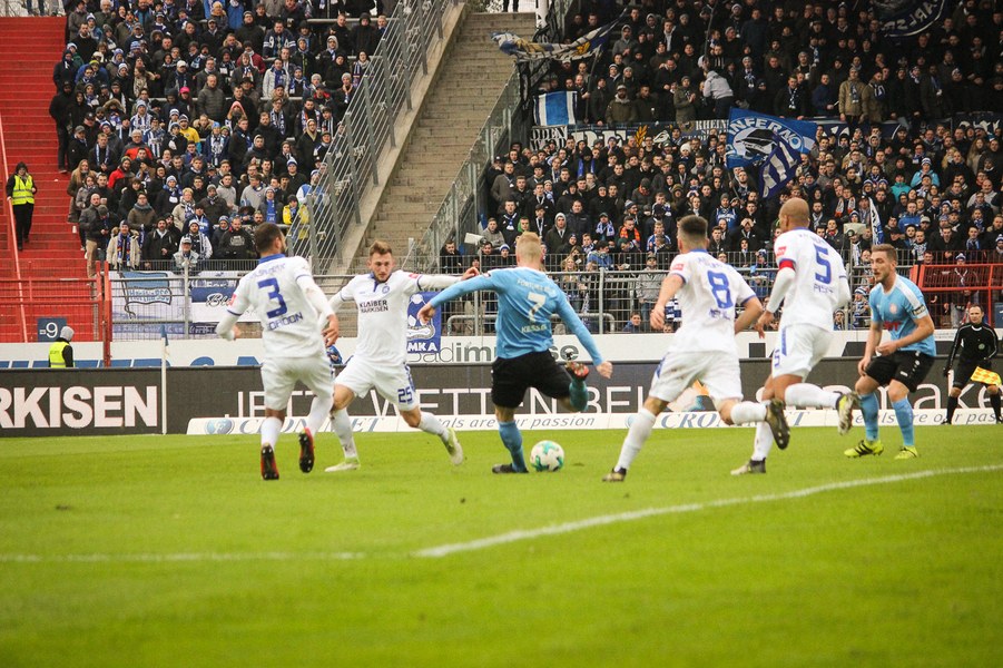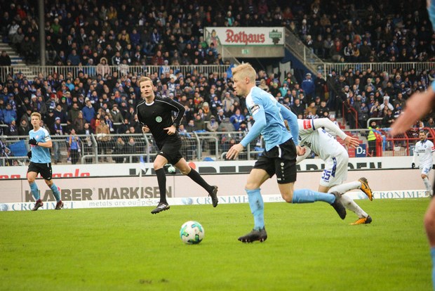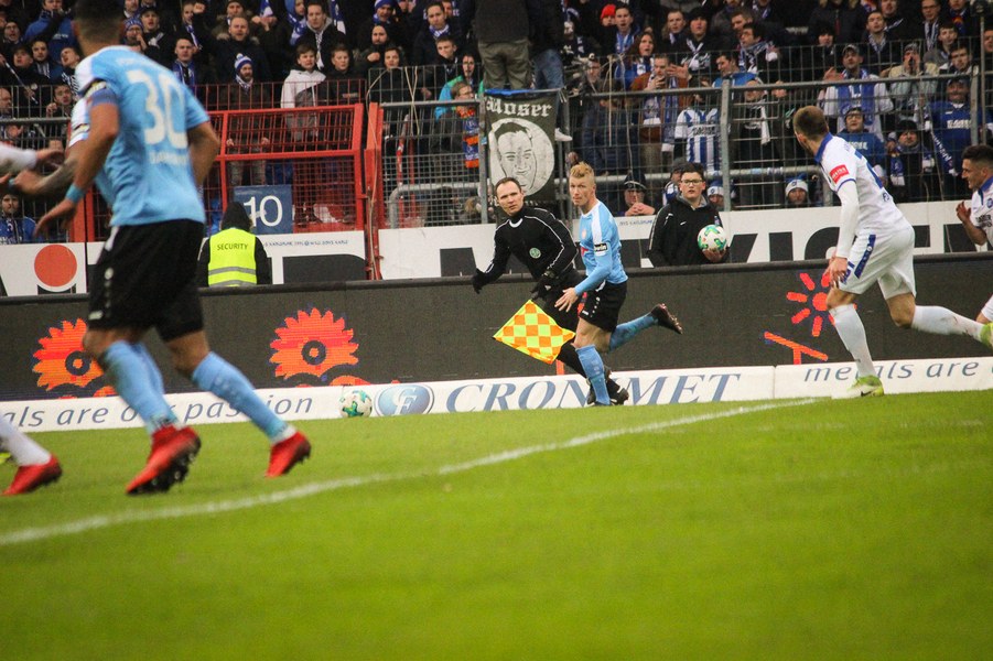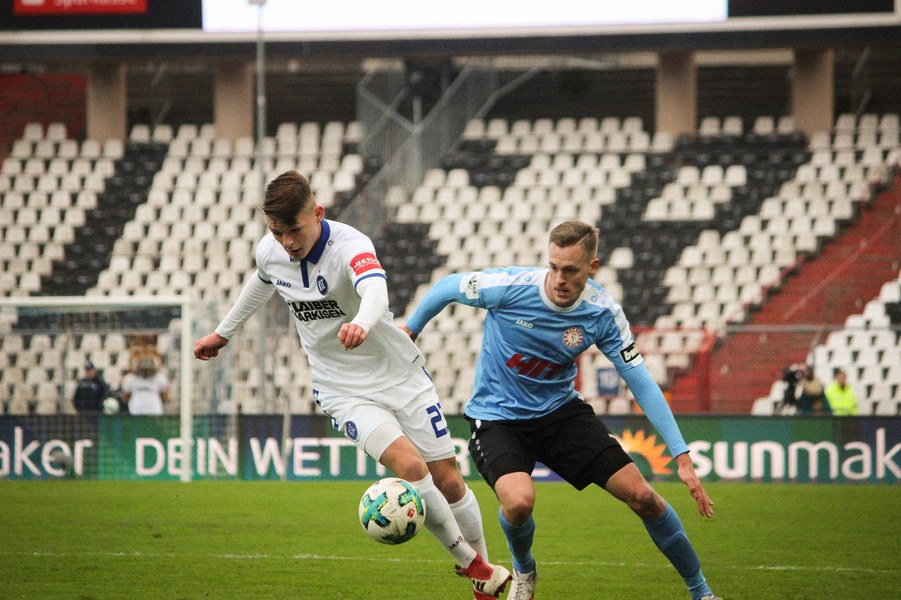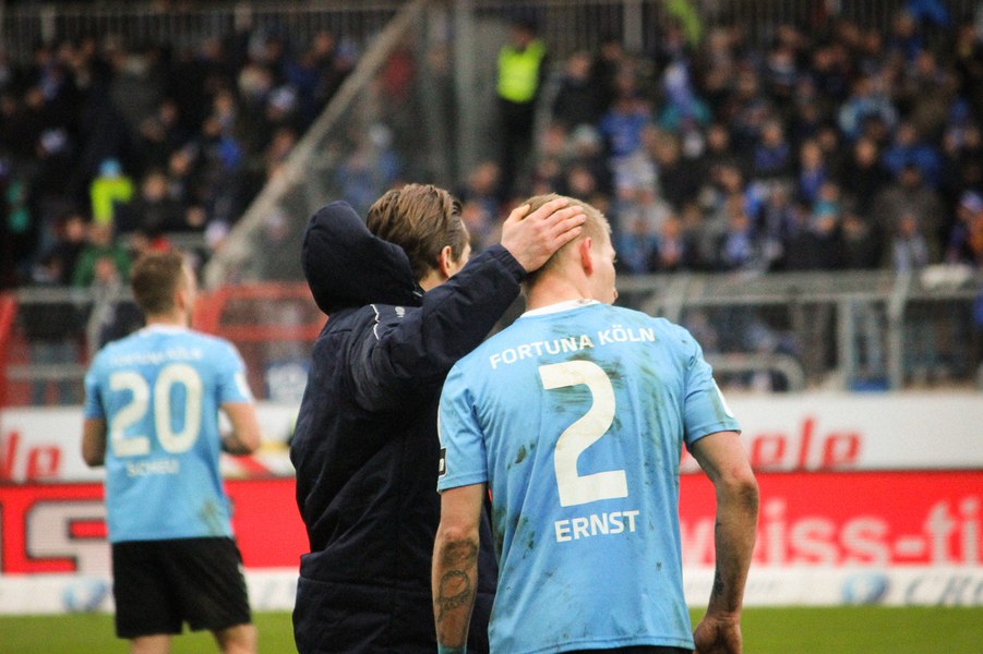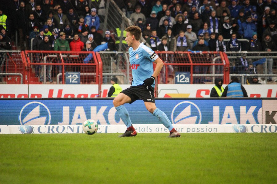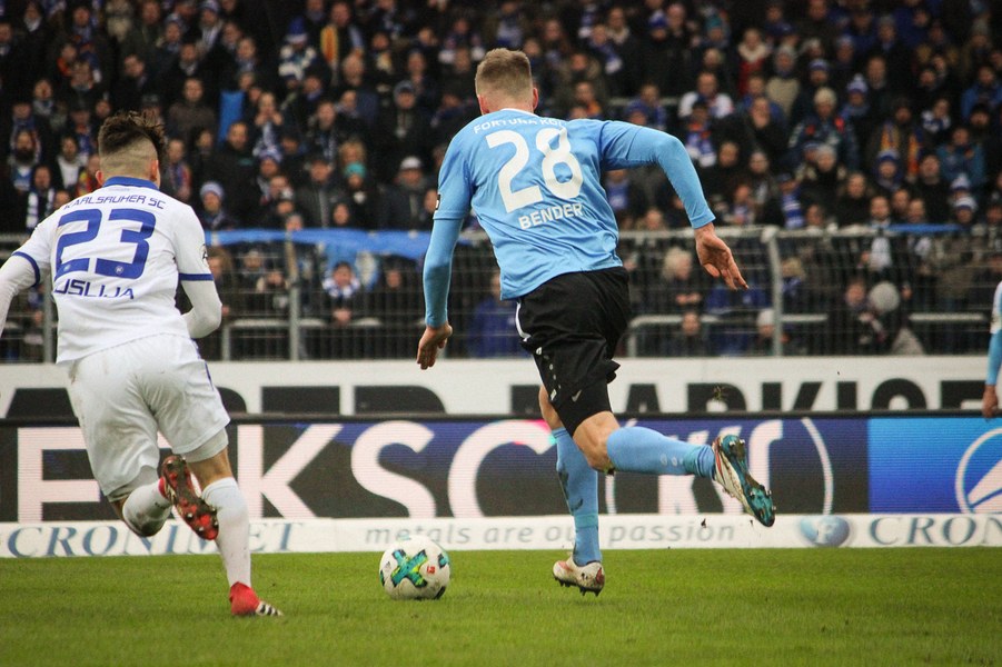 Trainer Uwe Koschinat änderte die erste Elf auf insgesamt drei Positionen. Kessel rückte für Farrona-Pulido in die Aufstellung, Theisen und Pazurek starteten für die beiden gesperrten Kegel und Kyere. Die Fortuna begann fehlerhaft in der Partie und so erwischte der KSC einen Auftakt nach Maß! Wanitzek eroberte tief in der Kölner Hälfte den Ball, legte auf Fink raus und dessen Hereingabe fand den Kopf von Schleusener. Der Stürmer verwandelte aus kurzer Distanz sicher (7.). In der Folgezeit leistete die Fortuna sich immer mal wieder Fehler im Aufbauspiel, die der KSC mit gefährlichen Kontern bestrafen wollte. Die Badener zeigten sich zwar spielstark, aber schafften es nicht wieder gefährlich vor das Tor der Kölner zu kommen. Nach und nach arbeiteten sich die Kölner aber ins Spiel und dominierten nach einer guten Viertelstunde teilweise das Geschehen. Abschlüsse von Bender und Dahmani waren die Folge (19./20.). Uphoff war es dann, der den Ausgleich der Fortuna verhinderte: Kessel und Dahmani spielten einen starken Doppelpass und hebelten damit die Defensive der Karlsruher aus. Kessels Abschluss konnte aber vom Schlussmann des KSC pariert werden (26.). Die Kölner probierten daraufhin öfters die Lücke zu finden, aber kamen vorerst nicht mehr gefährlich nach vorne. Kurz vor der Pause musste Boss dann allerdings eingreifen, als er nach einem langen Ball vor einem heraneilenden KSC-Stürmer in höchster Not klären konnte (44.).