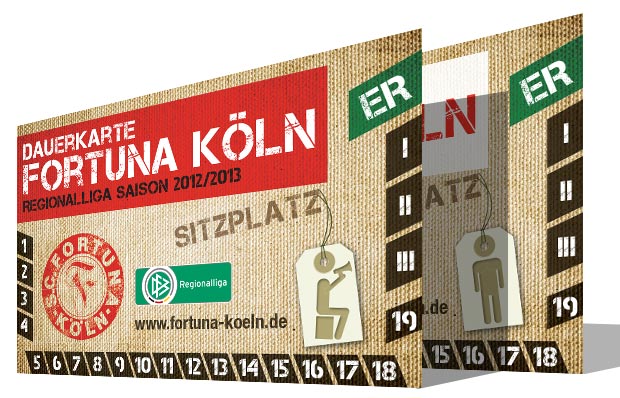 Die Fortuna-Rückrudendauerkarte ist ab sofort im Handel und bei allen bekannten Fortuna-Vorverkaufs­stellen (Lotto Burkhard - Gottesweg 23 / Lotto Kluth - Höninger Weg 184 / Colonia-Shop - Severinstr. 81) zu folgenden Preisen erhältlich: