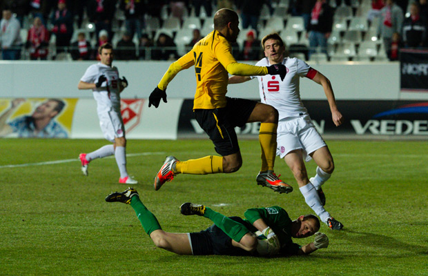 Dementsprechend hob Fortuna-Trainer Uwe Koschinat direkt nach dem Derbysieg gegen die U21 des 1. FC Köln den mahnenden Zeigefinger. Am Mittwoch dürfte es ein komplett anderes Spiel geben als gegen die jungen Geißböcke. Vielmehr erwartet der 42-Jährige ein Kampfspiel gegen Rot-Weiss Essen, mit entsprechend intensiven Zweikämpfen. Es gilt somit dagegen zu halten, wenn man etwas Zählbares mitnehmen will. Verzichten muss die Fortuna dabei nach wie vor auf Tobias Fink und Pascal Wichmann. Jungtorwart Wichmann muss auf Grund eines Knochenödems seine Schulter mit einem Gilchrist-Verband noch mindestens zwei Wochen ruhig halten. Linksverteidiger Fink darf nach einer erneuten MRT-Kontrolle im Eduardus Krankenhaus am vergangenen Montag die Intensität der Belastungen steigern. „Damit rückt für Tobias die Rückkehr ins Mannschaftstraining zwar näher, ein Einsatz gegen Essen und Lotte käme aber noch zu früh“, so Christian Osebold, Leiter der medizinischen Abteilung, nach Rücksprache mit Mannschaftsarzt Christoph Bruhns.