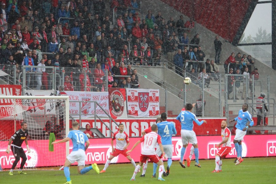 Ohne Wechsel gingen beide Teams in den zweiten Abschnitt, in dem der Jahn von Beginn an druckvoller agierte. So verpassten Kopp und Lais eine Pusch-Ecke (48.). Kurz drauf gelang Regensburg aber der Ausgleich: Nachdem Boss einen Schuss von Thommy noch aus dem langen Eck fischte, stand Lais goldrichtig und nickte zum 1:1 ein (52.). Die Partie wurde nun hektischer, weil das Regensburger Publikum plötzlich da war. Die Fortuna fand aber die perfekte Antwort: Alibaz dribbelte sich in den Strafraum durch und konnte nur per Foul am Abschluss gehindert werden. Den fälligen Elfmeter verwandelte Brasnic sicher (59.). Die erneute Fortuna-Führung sorgte aber nicht wirklich für Sicherheit. Das Spiel blieb weiter hektisch, weil der Jahn seine Möglichkeiten bekam: So tauchte George frei vor Boss auf, auch wenn der Fortuna-Keeper Endstation war (65.). Kurz darauf kam Grüttner aus spitzem Winkel nicht zum Abschluss (72.). Die Fortuna tauchte nur noch selten gefährlich im Angriff auf. Trotzdem hatte Brasnic die Vorentscheidung auf dem Fuß, als er frei vor Pentke scheiterte (78.). Zudem verpasste Souza aus aussichtsreicher Position das 3:1 für die Fortuna (88.). So kam es wie es kommen musste: SSV-Verteidiger Nandzik startete den letzten Angriff, Hyseni stieg am Höchsten und köpfte ins lange Eck zum 2:2 Endstand (90+4).
