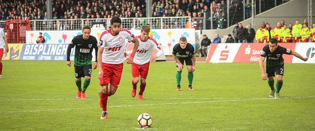 Eine Korsettstange ist für Preußen Münster Stürmer Adriano Grimaldi. Der 26-Jährige ist nicht nur Kapitän, sondern auch Dreh- und Angelpunkt in Münsters Offensive. Seinen Stellenwert untermauerte Grimaldi letzte Saison mit 17 Torbeteiligungen in 28 Drittliga-Spielen. Derzeit steht er bei zwei Toren und zwei Vorlage. Ein Muskelfaserriss ließ ihn noch nicht richtig in Gang kommen. Über kurz oder lang wird Grimaldi der Münster-Offensive aber wieder seinen Stempel aufdrücken. Mit seinen jungen Jahren hat Grimaldi im deutschen Profifußball schon einiges erlebt. Bei Mainz 05 schnupperte er unter Thomas Tuchel als 18-Jähriger Bundesliga-Luft. Über Zweitligist 1. FC Heidenheim kam der Stürmer dann schlussendlich nach Münster, wo er jetzt seit 2015 auf Torejagd geht. Seit dem zweiten Spieltag wartet Grimaldi derzeit jedoch auf eigenen Treffer. Vielleicht kommt für den Stürmer die Fortuna gerade recht: In zwei Spielen gegen die Südstädter traf Grimaldi dreimal.