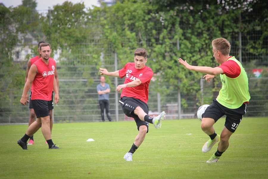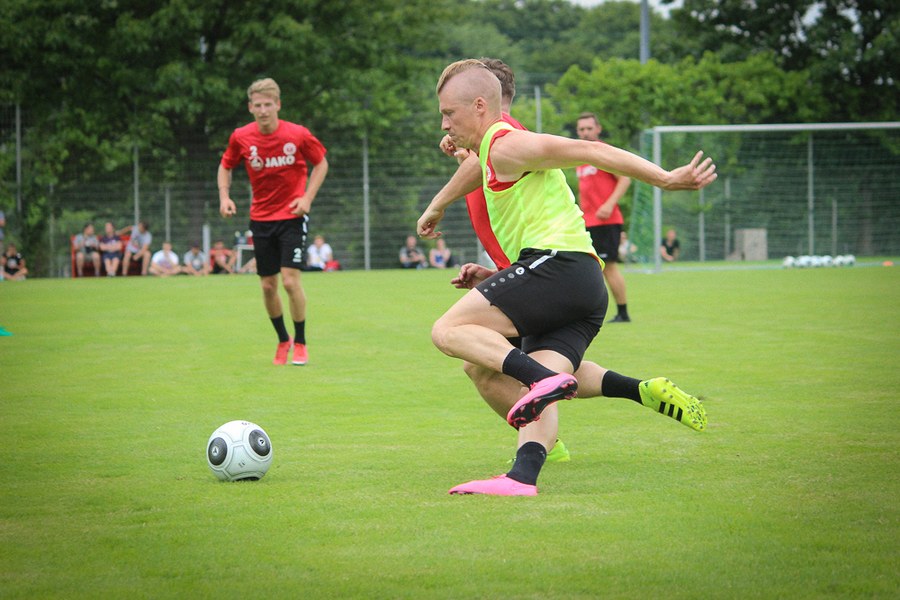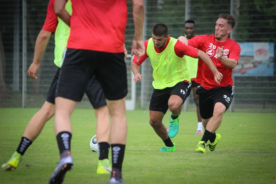 Knapp 100 Fortuna-Fans schauten beim Trainingsauftakt am Südstadion vorbei, um das neue Team der Fortuna hautnah zu erleben. Mit dabei waren auch die Neuzugänge Nico Brandenburger, Ali Ceylan, Daniel Keita-Ruel, Dominik Ernst und Robin Scheu. Nach einem kurzen Warmlaufen und Passübungen stand dabei eine Spielform auf dem Programm. Auch die verletzten Andersen und Exslager schauten beim Trainingsauftakt der Fortuna vorbei. Nicht mittrainieren konnte Cimo Röcker aufgrund einer Reizung im Kniegelenk.