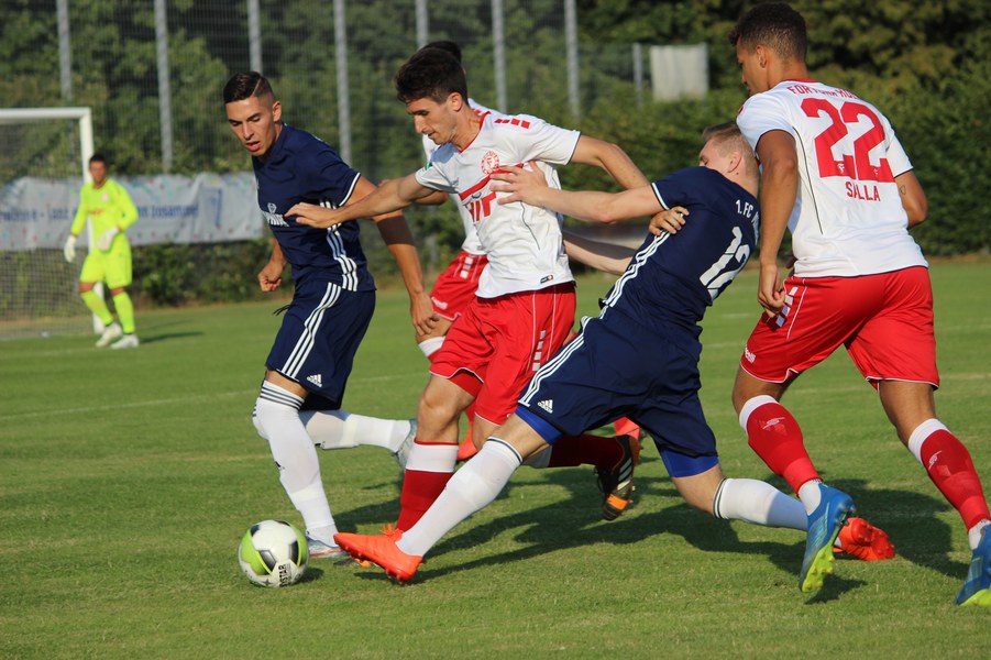 Mit den FC Monheim hatte die Fortuna im nunmehr dritten Testspiel der laufenden Woche einen Oberligisten vor der Brust. Zu Beginn der Partie fehlte jedoch die in den vergangenen Testspielen gezeigte Frische in Kopf und Fuß. Immer wieder schlichen sich kleine Unsauberkeiten in das Spiel der Fortuna ein. Dennoch suchten die Spieler immer wieder den Weg nach vorne und belohnten sich schließlich mit der Führung. Nach einer verunglückten Abwehraktion des Monheimer Torwarts brachte Blendi Idrizi den Ball auf Firat Tuncer, der ins leere Tor köpfte (38.). Auch Monheim kratzte an einem Treffer. Fortuna hatte jedoch Glück, dass der Ball von der Latte des eigenen Gehäuses kurz vor der Linie aufkam. So nahmen die Südstädter die Führung mit in die Pause.