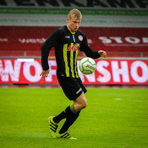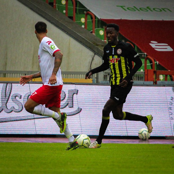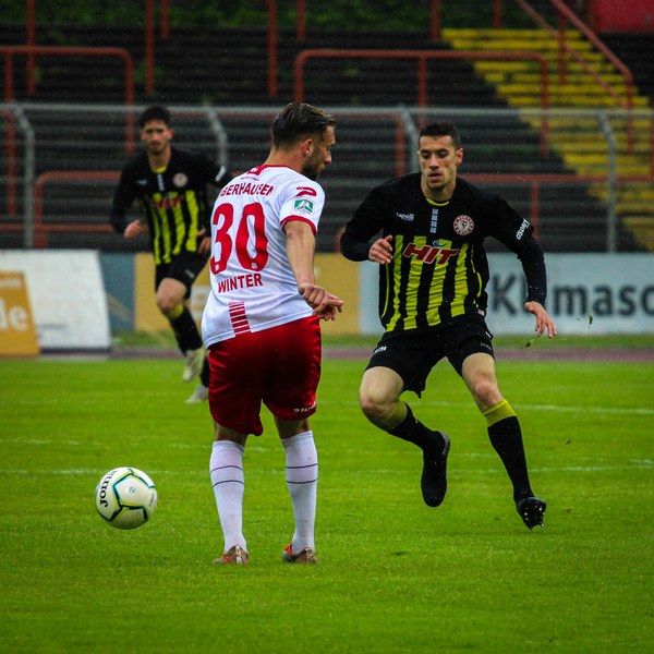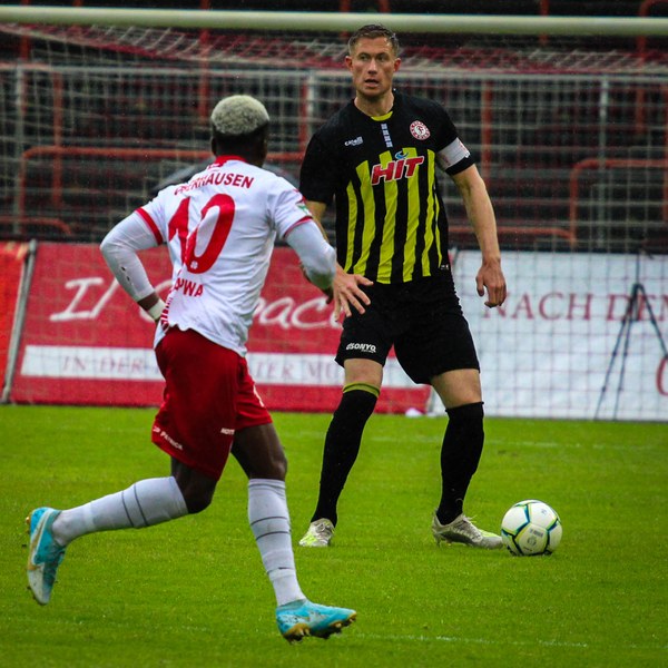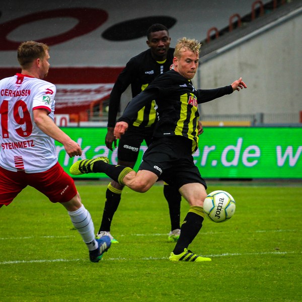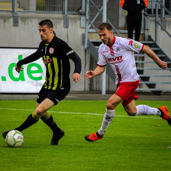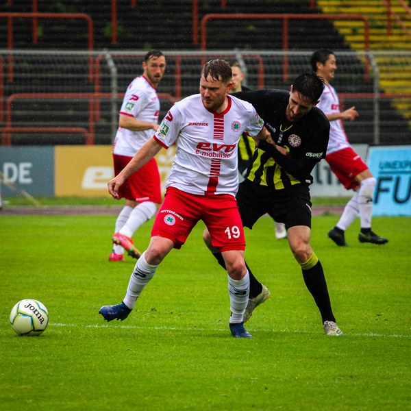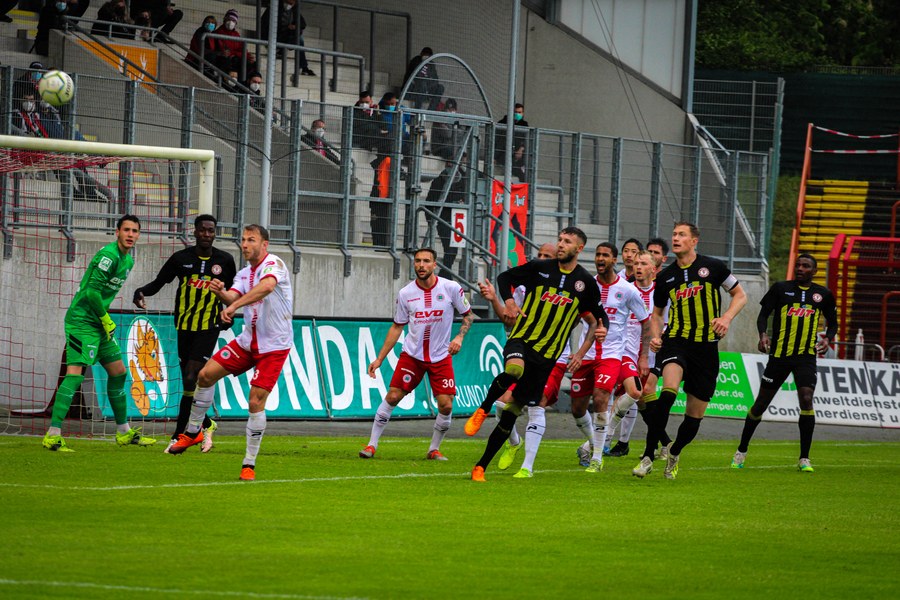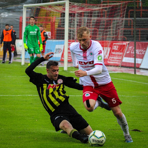 Nachdem die Fortuna am Mittwoch noch im Bitburg-Pokal angetreten ist, stand heute wieder Ligaalltag auf dem Programm. Der Tabellensiebte aus Oberhausen durfte heute nach langer Zeit wieder Zuschauer im Stadion begrüßen. 500 Fans empfingen die Mannschaften lautstark auf dem Spielfeld. Im Vergleich zum Pokalspiel vor wenigen Tagen nahm Alexander Ende nur einen einzigen Wechsel vor: Für Hamza Salman stand Pascal Itter in der Startelf. In Oberhausen regnete es auch vor Anpfiff schon ununterbrochen, weshalb einige Spieler auf dem nassen Rasen den Halt verloren und wegrutschten. Jan-Luca Rumpf holte sich in einem intensiven Spiel schon früh die gelbe Karte ab, nachdem er seinen Gegner umgrätschte (7. Min.). Die vielen Ballverluste und die damit verbundenen Ballbesitzwechsel führten dazu, dass der Beginn der Partie sehr hektisch wirkte. Ein leichtsinniger Ballverlust in der Vorwärtsbewegung von Timo Hölscher leitete beinahe die Führung der Gastgeber ein. Ein Steckpass landete bei Oubeyapwa, in seinen Abschluss warf sich Lanius rein und klärte gerade noch zur Ecke. Der anschließende Eckball ließ die Zuschauer dann jubeln. Das Spielgerät wurde an den zweiten Pfosten befördert, dort stand Terada bereit, der per Kopf den 1:0 Führungstreffer erzielte (12. Min.). Die Fortuna lag früh zurück, fand aber auch nach dem Rückschlag nicht wirklich in die Partie. Das Spiel der Fortuna war teilweise sehr überhastet und sie schafften es kaum den Ball über mehrere Stationen laufen zu lassen. Rot-Weiß Oberhausen kam dagegen öfter in die Nähe des gegnerischen Tores und holte zumindest immer mal wieder einen Eckball raus. Die erste gefährliche Aktion auf Seiten der Fortuna leitete Hölscher ein. Der zentrale Mittelfeldspieler spielte einen punktgenauen Ball in den Lauf von Suheyel Najar. Er rannte auf das gegnerische Tor und suchte den Abschluss. Fassnacht, der im Vollsprint angerauscht kam, schmiss sich dazwischen und konnte den Gegentreffer verhindern (25. Min.). Das sollte auch die einzige nennenswerte Chance in Durchgang eins für die Fortuna bleiben. Der Torschütze Terada hätte beinahe einen Doppelpack geschnürt. Ausgang war eine schöne Kombination der Kleeblätter, bevor Terada das Leder knapp rechts am Kasten von Rauhut vorbeisetzte (32. Min.). Fortuna Cheftrainer Alexander Ende wechselte bereits vor dem Pausenpfiff und brachte den von seiner Verletzung zurückgekehrten Maik Kegel. Für ihn räumte Kai Försterling das Feld, der bereits mit einer gelben Karte belastet war (39. Min.). Bevor es für beide Mannschaften in die Kabinen ging, hatten die Oberhausener erneut eine gute Möglichkeit. Kreyer ließ die komplette Abwehr der Fortuna alles andere als gut aussehen und tanzte die Hintermannschaft im Strafraum aus. Sein abgeblockter Schuss landete beim Oberhausener Topscorer Oubeyapwa. Aus guter Position konnte sein Abschluss ebenfalls gerade noch abgewehrt werden (42. Min.). Kurz darauf pfiff Schiedsrichter Schäfer zur Halbzeit.