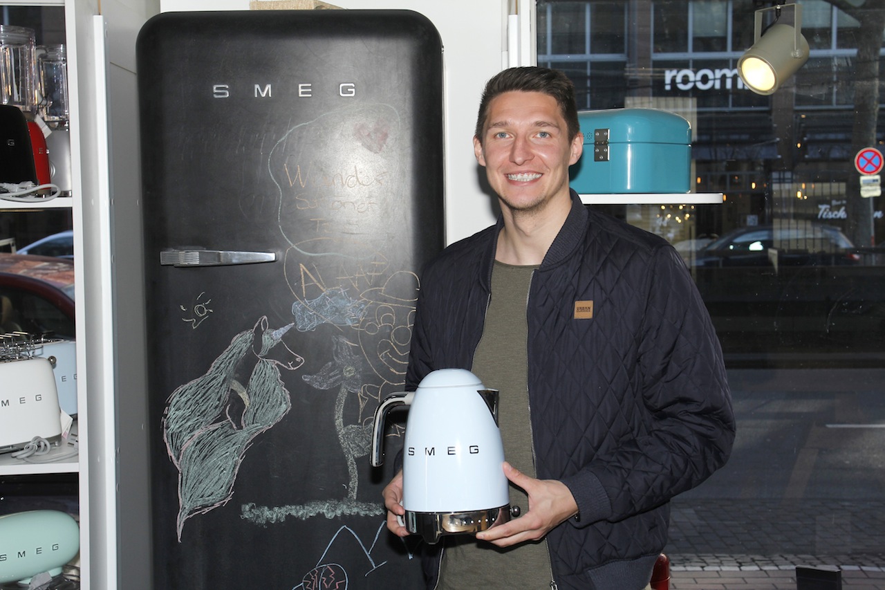 MP: Ich bin ein solider Mann und kann das nötigste machen, angefangen bei einem Nudelgericht. Den Großteil übernimmt aber glücklicherweise meine Frau, sonst wäre ich ein Hungerhaken. Die Kühlschränke von Smeg hier ähneln meinem. Ich mag diesen Retrostyle sehr. Die Küchengeräte hier sind ja der Wahnsinn.