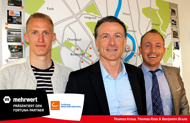 „Unsere ältesten und treuesten Kunden haben wir in der Südstadt. Und da wollen wir natürlich nicht zurückstehen, wenn es darum geht, die dort heimische Fortuna zu unterstützen. Wir freuen uns darauf, von nun an gemeinsam in die Zukunft zu blicken und zusammen erfolgreich zu sein“, erläutert Thomas Ross, Geschäftsführer cambio Köln, das Engagement bei der Fortuna. Für Benjamin Bruns, Leiter Sponsoring/Vertrieb Fortuna Köln, erweitert sich mit der Partnerschaft mit cambio Carsharing das Fortuna-Netzwerk: „Die Fortuna-Familie wächst in Köln weiter. Sinnbildlich dafür steht cambio Carsharing, die eine neue Branche in unserem Netzwerk aufmachen. Das Team um Thomas Ross ist ein lebendiger Partner mit einer umweltbewussten Alternative der Fortbewegung. Aktuell gibt es in Köln bereits ein breites Netz an cambio Stationen, aber wir wollen, dass sich dieses weiter vergrößert.“