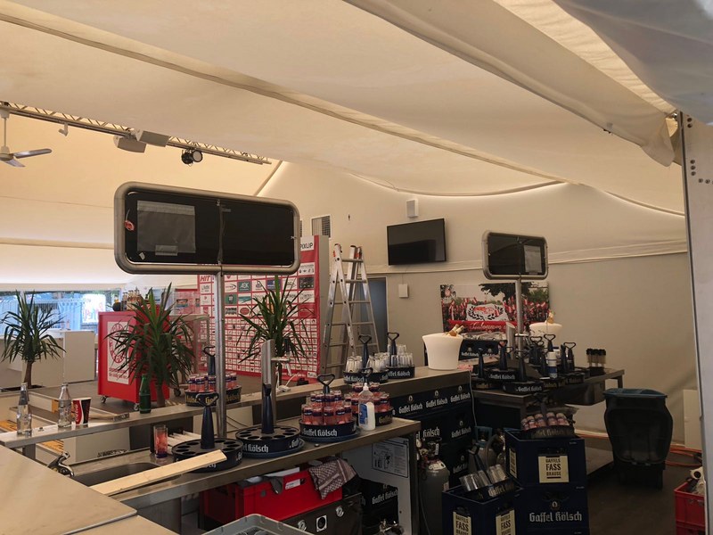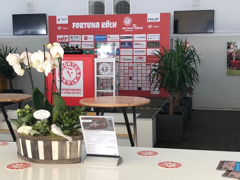 Abseits des Fußballplatzes tut sich bei der Fortuna eine ganze Menge. Die Anzahl der Fortuna-Business-Partner ist auf über 300 Partnerunternehmen gestiegen. Um der hohen Nachfrage gerecht zu werden, wurden in der Sommerpause die VIP-Bereiche erweitert. Dank der tatkräftigen Unterstützung von 19 Partnerunternehmen aus dem Netzwerk der Fortuna entstand ein VIP-Bereich mit einer Kapazität von bis zu 750 Personen. Federführend angeleitet durch die Architekten Ingenieure Billstein, Reinhard Billstein und durch die Planungsgesellschaft ITG Robert Kalok wurde der Ausbau geplant und umgesetzt. Aber nicht nur die Kapazität wurde erweitert, auch der Wohlfühlfaktor über mehr Sitzmöglichkeiten, eine bessere und funktionellere Buffetdarstellung, einer DigiPresso®Bar durch die Döres AG und Caffè e Vita, eine repräsentative Gaffeltheke in einer U-Form angelegt und vielen weiteren Neuerungen lädt die Businesspartner der Fortuna zum Verweilen ein.
