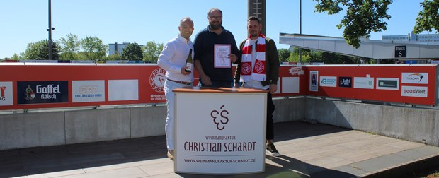 Die Weinmanufaktur Christian Schardt bleibt auch in Zukunft treuer Partner der Fortuna. Das Unternehmen hat seinen Vertrag mit den Südstädtern um weitere zwei Jahre verlängert. Mit ihren selbst angebauten Weinen und Sekten sorgt die Weinmanufaktur für ein umfangreiches Angebot, das im Online-Shop erhältlich ist. Erst seit kurzem hat die Weinmanufaktur Christian Schardt sein Sortiment um einen ganz besonderen Wein erweitert: den Fortuna-Wein. Das Logo des Südstadt-Klubs ziert die Flasche des Grauburgunders.