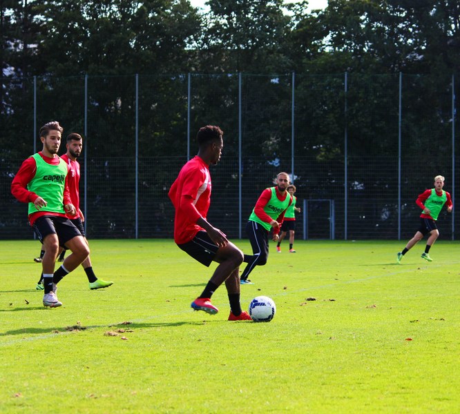 Stratos: „Angeschlagen ist Mike Owusu. Aber Mike ist ein guter Jung. Er weiß, was er machen muss, damit er am Freitag auf dem Platz steht. Felix Neuhäuser und Kenan Dünnwald sind verletzt. Die haben sich beide in der U 23 einen Bänderriss geholt. Lionel Salla hat noch Problem mit der Schulter. Kelvin Lunga hat auch immer noch Probleme. Farid war letzte Woche krank. Da man muss immer ein bisschen aufpassen. Yannick Filipovic hat gestern normal mittrainiert.“