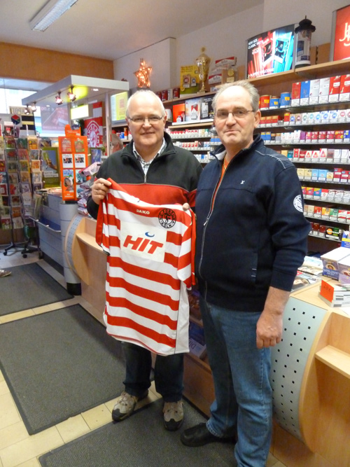 Für Wolfgang Meirich war es so ein wenig ein vorgezogenes Weihnachtsgeschenk, als Manfred Kluth ihm seinen Gewinn überreichte. Der Fortuna-Fan war einer der Kunden der Fortuna-Vorverkaufsstelle "Lotto Kluth", der in der Hinrunde eine der neuen Minidauerkarten (fünf Ticket für den Preis von vier) gekauft hatte. Unter diesen war ein Original-Trikot der Fortuna verlost worden und löste jetzt die ersten Weihnachtsgefühle aus. Auch in der Rückrunde ist dieses neue Ticketangebot ausschließlich bei den beiden Vorverkaufsstellen der Fortuna Lotto Kluth (Höninger Weg 184, Köln-Zollstock) und Lotto Burckardt (Höninger Weg/ Ecke Gottesweg, Köln-Zollstock erhältlich.