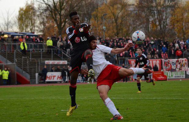 Mit 3:2 (2:2) gewinnt die Fortuna ihr letztes Heimspiel in diesem Jahr und verabschiedet sich damit mit drei Punkten vom eigenen Anhang. Der Sieg war vor 779 Zuschauern im Südstadion aber ein hartes Stück Arbeit. Besonders in der ersten Hälfte zeigte die U23 von Bayer Leverkusen ihre fußballerischen Qualitäten. Nach ausgeglichenem Start sollte sich Mitte der ersten Halbzeit ein wildes Spiel entwickeln. Leverkusen ging zunächst mit einem sehenswerten Distanzschuss von Khaled Narey in Führung (20. Min). Der Fortuna gelang jedoch nach viel Bemühen durch Aydogmus der Ausgleich (31. Min). Kurz darauf geriet der Gastgeber allerdings erneut ins Hintertreffen, als Sebastian Hirsch eine feine Einzelaktion von Christoph Siefkes zur zweiten Leverkusener Führung vollendete (34. Min). Direkt im Gegenzug schaffte die Fortuna durch einen Schuss von Rechtsverteidiger Sievers wieder den erneuten Ausgleich (35. Min). Nach dem Seitenwechsel verflachte die Partie ein wenig. Die Fortuna sollte jedoch das etwas glücklichere Ende für sich haben, als wieder Ercan Aydogmus den Ball aus 18 Metern ins Tor wuchtete (79. Min). Leverkusen versuchte in den Schlussminuten noch den nicht unverdienten Ausgleich zu erzielen, sollte für einen starken Auftritt im Südstadion jedoch nicht mehr belohnt werden.