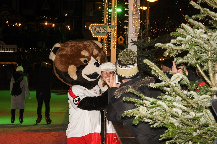 Fortuna-Panda Fred war ebenfalls dabei und machte die Eisbahn am Heumarkt unsicher.