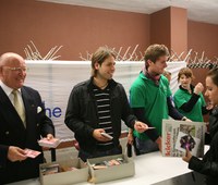 Klaus Ulonska (1. Vorsitzender Fortuna Köln) und Abwehrspieler Ioannis Foukis absolvierten in vergangenen Woche einen sehr angenehmen Termin an der Kölner Sporthochschule. Eine Einführungsveranstaltung für die Studenten, die dort im Wintersemester ihr Studium aufnehmen nutzten die beiden, um alle zu einem Heimspiel der Fortuna im Südstadion einzuladen.