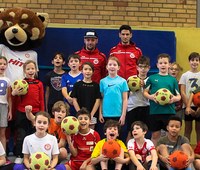 Den Start in die Woche bekamen die Kinder der GGS Nußbaumerstraße durch eine besondere Unterrichtseinheit versüßt. Die Profis Thomas Bröker, Christoph Menz und Lars Bender leiteten am Montag, den 9. April die Sportstunde der Kids und standen auch danach noch für Fragen und Autogramme zur Verfügung.