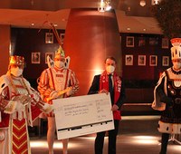 3.333,33 EUR konnten Josef und Marcel Hergarten sowie Präsident Hanns-Jörg Westendorf an Prinz Sven I., Bauer Gereon und Jungfrau Gerdemie übergeben. Der Betrag kommt dem Verein TrauBe e.V., Trauerbegleitung von Kölner Kindern, Jugendlichen und jungen Erwachsenen, zugute.