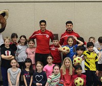 Am Montagmorgen trainierten die drei Profis mit den Kindern der GGS Halfengasse in Köln-Niehl. An drei Stationen wurden Torschüsse, Dribblings und Spielformen trainiert.