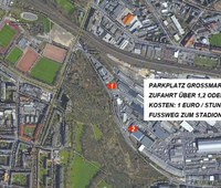 Beim kommenden Heimspiel gegen Fortuna Düsseldorf II steht der große Asche-Parkplatz, aufgrund des 1. Kölner Oktoberfest nicht zur Verfügung. Alternativ könnt ihr euer Auto aber auf dem Großmarkt-Parkplatz (s. Bild) abstellen. Von diesem erreicht man das Stadion zu Fuß in 10 Minuten und die Parkgebühren belaufen sich auf 1€/Stunde.