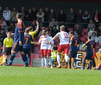 Seit gestern Abend ist es klar. Die Fortuna muss vier Spiele auf Thiemo-Jérôme Kialka verzichten. Der Stürmer hatte im Spiel gegen die U23 von Bayer 04 Leverkusen nach einem unsportlichen Verhalten die Rote Karte gesehen. Am gestrigen Montag-Abend verhängte der Verband nun eine Sperre von vier Spielen für den Stürmer. Kialka ist damit erst am 37. Spieltag zu der Partie bei der U23 des MSV Duisburg wieder spielberechtigt.