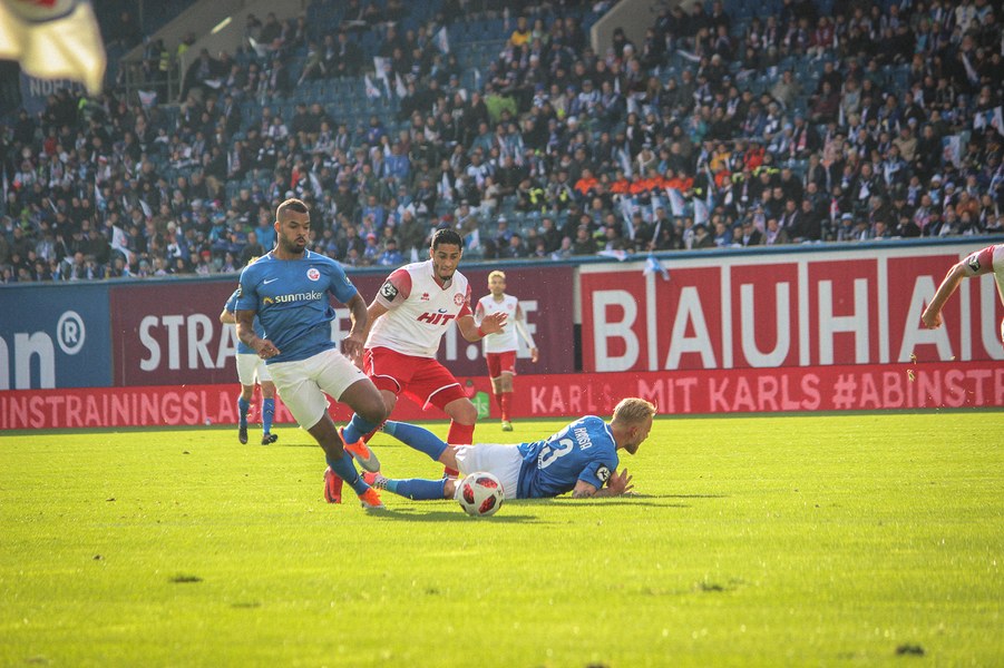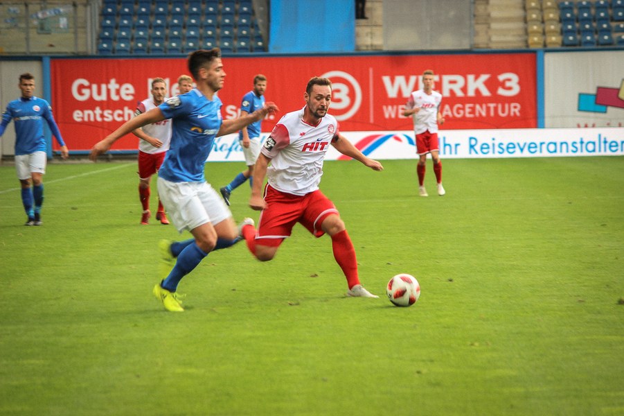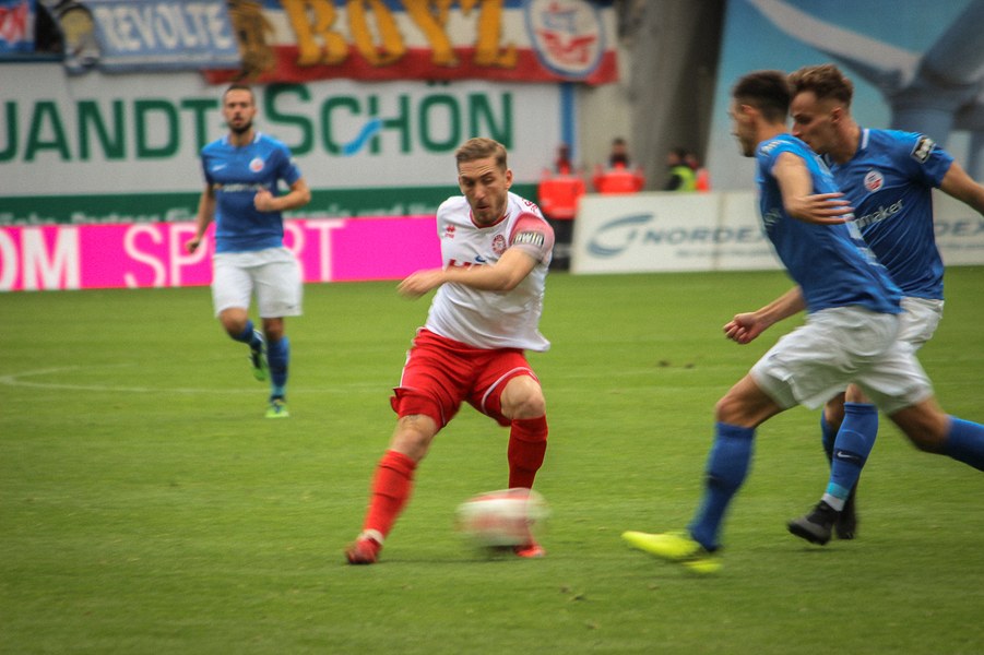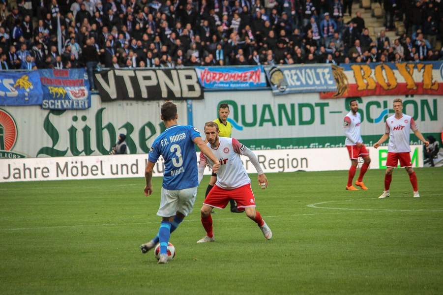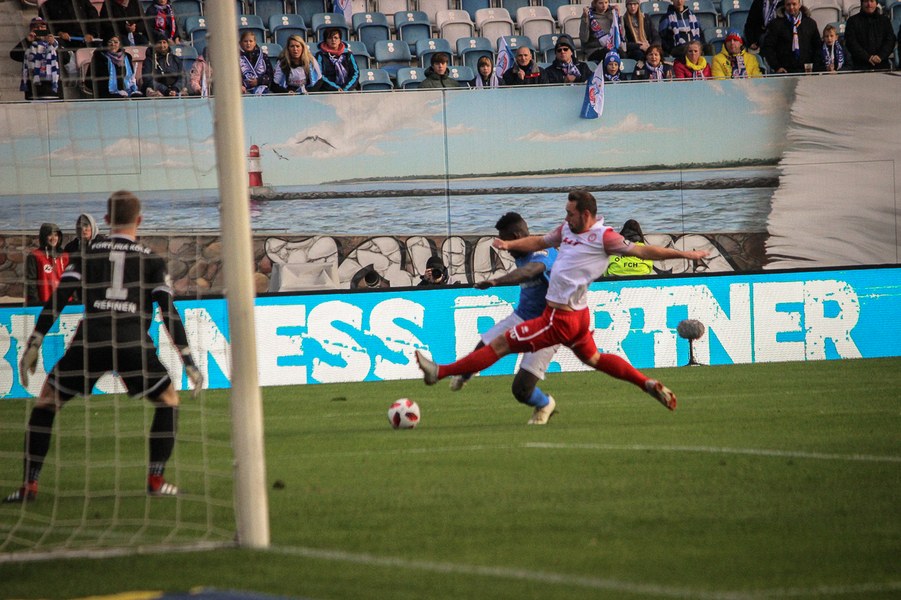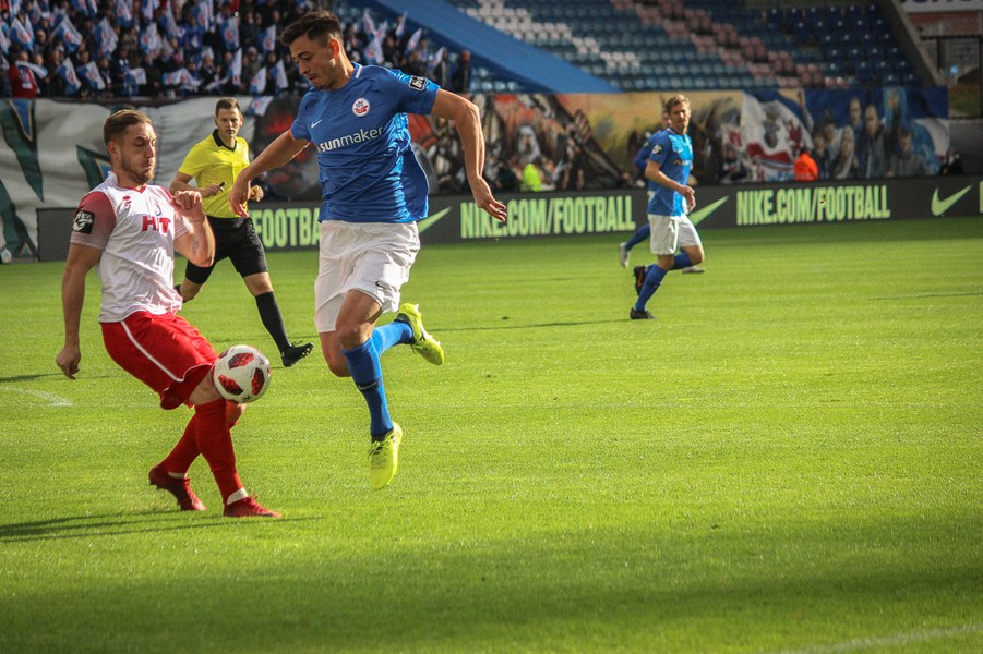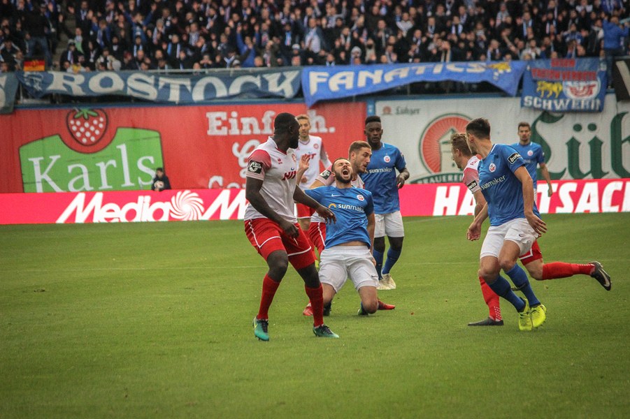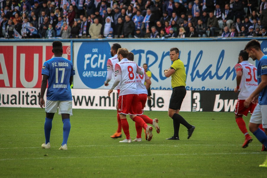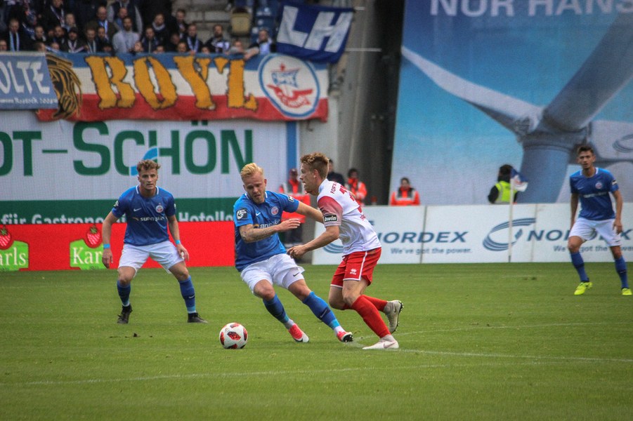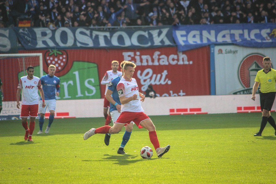 Ohne Wechsel ging es in den zweiten Abschnitt, der in ruhigerem Tempo begann. Breier und Hartmann probierten sich für ihre Farben jeweils mit einem Abschluss (50./55.). Rostock nahm einen Gang raus aus der Partie, ließ die Offensive der Fortuna aber nicht zur Entfaltung kommen. Trotzdem war man dem nächsten Tor in Person des wuseligen Biankadi näher, der aber an Rehnen scheiterte (66.). Dann meldete sich die Elf von André Filipovic aber endgültig in der Partie an: Einen Freistoß von der Stafraumkante brachte Kegel im Tor unter (69.). Der Anschlusstreffer hauchte der Fortuna spürbar neues Leben ein: Scheu scheiterte kurz darauf aus spitzem Winkel am Außennetz (71.). Hansa blieb zunächst passiv, während die Fortuna mutiger wurde und auch über die Innenverteidiger Kyere und Uaferro immer wieder anschob. Es gelangen nun auch vermehrt die Kombinationen in der Offensive, sodass man sich in Hansas Hälfte festsetzte. Zu selten kamen die Kölner aber gefährlich in den Rostocker Strafraum, auch wenn Eberwein eine Schiek-Flanke kurz vor Schluss aus kurzer Distanz verpasste (82.). So blieb es letztlich beim 3:1-Heimsieg für Hansa Rostock.