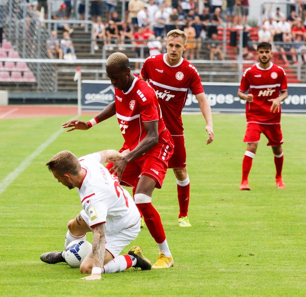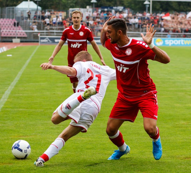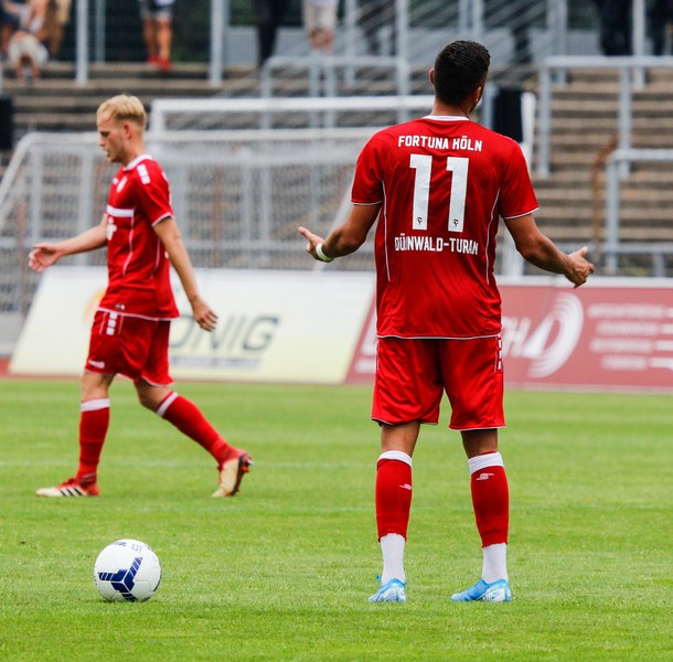 Endlich ging es wieder los. Nach etwas mehr als fünf Wochen Vorbereitung stand heute das erste Pflichtspiel für die Fortuna auf dem Programm. Wie bereits in den Testspielen schickte Trainer Thomas Stratos sein Team im 4-2-3-1 auf den Platz. Gleich von Beginn versuchte die Fortuna, ihr Spiel aufzuziehen und den Gegner laufen zu lassen. Die erste Annäherung gelang nach sechs gespielten Minuten. Alem Koljic brachte den Ball von der linken Seite. Bevor er mit seiner Flanke Roman Prokoph finden konnte, wurde der Ball zur Ecke gelenkt. Der FC brauchte einige Minuten, kam dann aber besser ins Spiel uns sicherte sich mehr Spielanteile als noch zu Beginn der Partie. Ein Missverständnis zwischen der Abwehr und Torwart Rauhut brachte den FC erstmals gefährlich in Tornähe – Dennis Brock klärte jedoch zur Ecke (14.). Den nächsten Fortuna-Anlauf startete Franko Uzelac. Der Kapitän suchte mit seiner Flanke Roman Prokoph. Der Ball war aber etwas zu lang und landete in den Armen von FC-Keeper Scott (26.). Auf der anderen Seite prüfte Justin Petermann das ganze Können von Kevin Rauhut, der den Ball zur Ecke abwehren konnte (34.) und damit, genau wie Brady Scott, seinen Kasten bis zum Halbzeitpfiff sauber hielt.