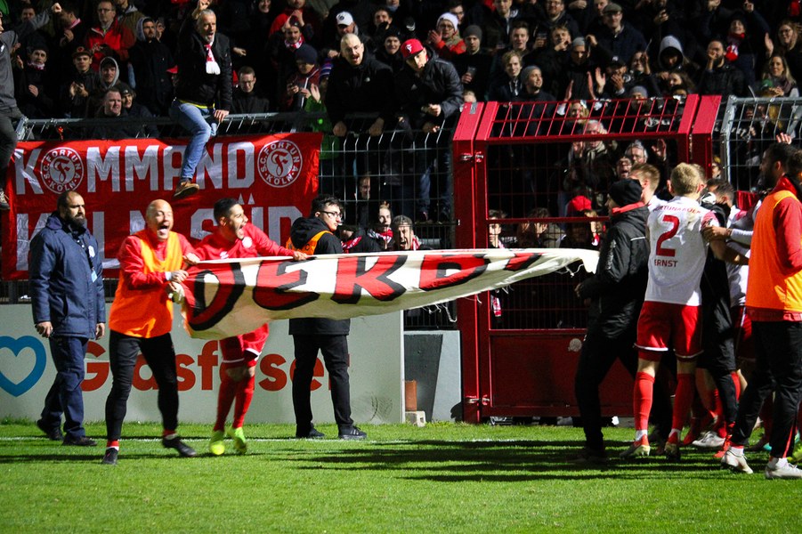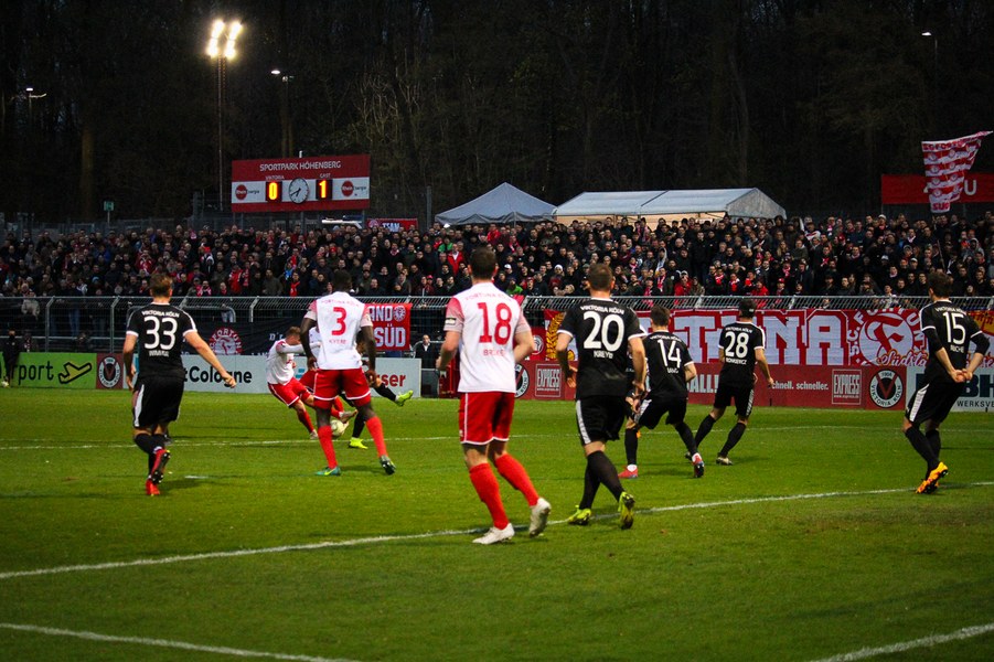 In der Nachspielzeit fiel dann aber doch die Entscheidung zu Gunsten der Fortuna: Nach Ecke von Michael Eberwein bekam Boné Uaferro den Ball auf den rechten Schlappen und verwandelte in bester Torjägermanier unhaltbar zum 3:2 für Fortuna Köln (90 + 3).