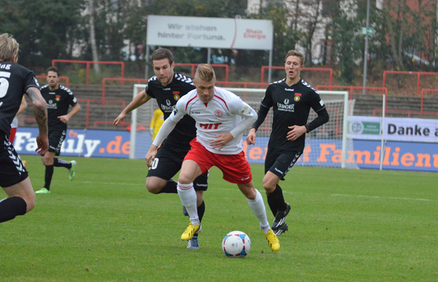 Die Fortuna feiert gegen Sonnenhof Großapach einen erfolgreichen Start in die Rückrunde: Mit einem am Ende klaren 4:0 (1:0) setzt sich die Koschinat-Elf gegen den Mitaufsteiger durch. Dabei zeigte sich die Fortuna von Beginn an als das aktivere Team. Beide Mannschaften hielten sich nicht lange im Mittelfeld auf, sondern suchten jeweils den direkten Weg nach vorne. Rahn brachte die Kölner nach einem perfekten Konter zum Ende der ersten Halbzeit schließlich in Front: Nach einem Ballgewinn von Zinke setzte Kraus den Stürmer in Szene, der zum 1:0 vollendete (31.). Großaspach zeigte sich seinerseits besonders nach Standards gefährlich, aber sowohl Schuster (7.) als auch Fischer (35.) verfehlten per Kopf das Tor. Nach dem Seitenwechsel konnte die Fortuna die Führung schnell ausbauen. Eine Ablage vom eingewechselten Kialka nutzte Kessel frei vor SG-Schlussmann Kunz zum 2:0 (65.). Nach dem zweiten Gegentreffer war von Großaspach in der Offensive nur noch wenig zu sehen. Die Fortuna kontrollierte die Partie anschließend und erhöhte in der Schlussphase durch die beiden ersten Drittliga-Treffer von den eingewechselten Kialka und Oliveira Souza schließlich auf 4:0 (83./90.).