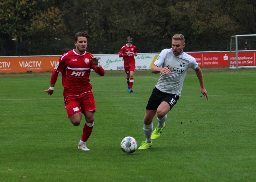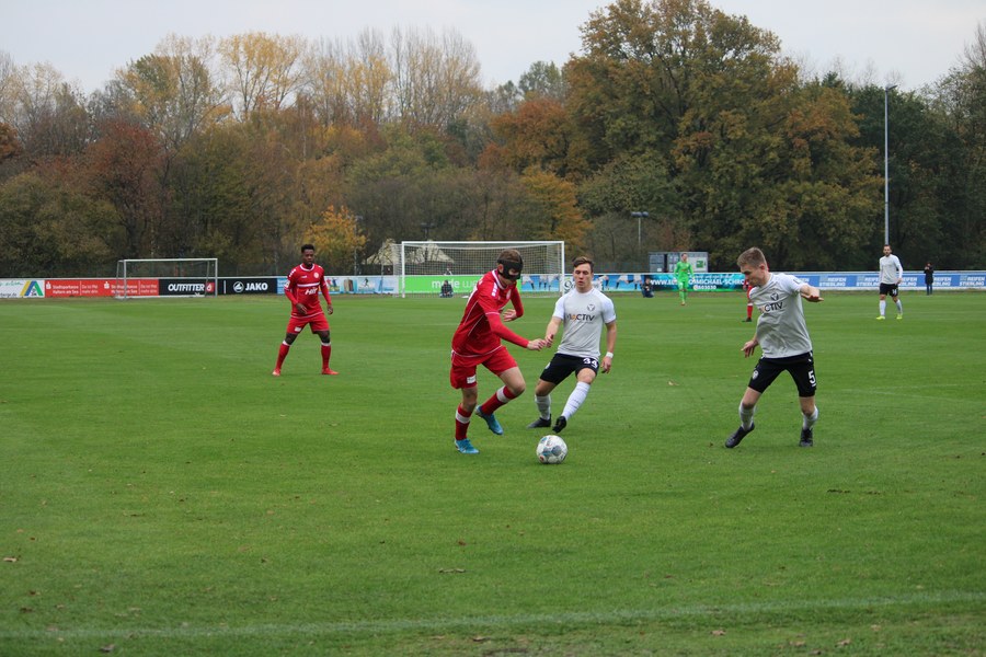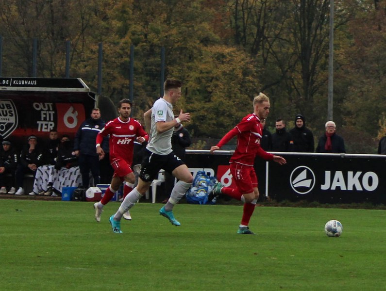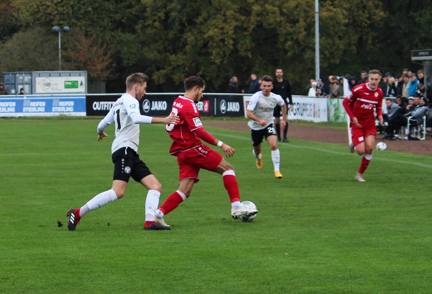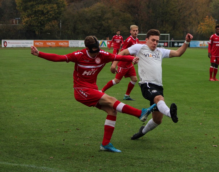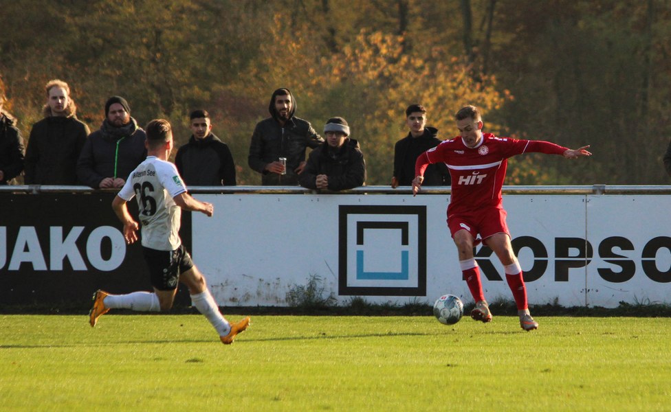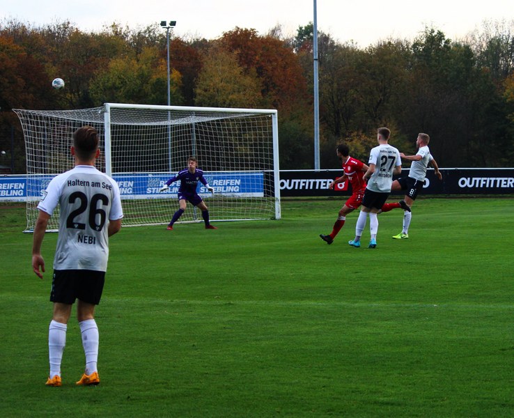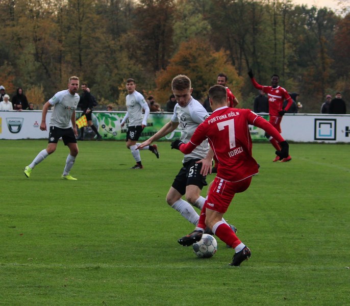 Gegen Haltern war die Geduld der Fortuna gefragt. Haltern ließ Fortuna kommen und lauerte auf die Umschaltmomente. Die Südstädter versuchten es meist über die aktive rechte Seite. Nico Ochojski suchte mit seinen Flanken die Mitspieler, fand jedoch meisten Haltern-Keeper Rafael Hester (8./11.). So sorgte ein Freistoß für das erste große Raunen in der Stausee-Kampfbahn. Franko Uzelac trat zum Freistoß an und zog ihn in gewohnter Manier direkt auf das Tor. Nur Zentimeter setzte er zu hoch an und jagte den Ball über die Latte (16.). Haltern kam ein bisschen besser in das Spiel und tauchte erstmals gefährlich vor dem Tor von Rauhut auf. Arda Nebi rückte über die rechte Seite vor und setzte zum Schluss an. Dieser prallte von Uzelacs rücken erneut vor die Füße von Nebi, der den zweiten Versuch nur knapp über die Latte setzte (22.). Fortuna blieb geduldig und nutzte den nächsten Freistoß für die Führung. Jannes Hoffmann zog den Ball direkt auf das Tor. Hester streckte sich und klärte den Ball kurz vor der Latte – allerdings vor die Füße von Uzelac, der den Ball über die Linie drückte (31.). Nur drei Minuten später tauchte Prokoph vor dem Kasten von Haltern auf, legte den Ball im Fallen allerdings daneben. Kurz vor dem Pausenpfiff hieß es dann noch einmal durchatmen für Fortuna. Haltern zimmerte den Ball an die Latte. Von dort aus landete das Spielgerät vor der Linie und die Südstädter beförderten den Ball aus der Gefahrenzone (45.). Es war die letzte Aktion vor dem Pausenpfiff.