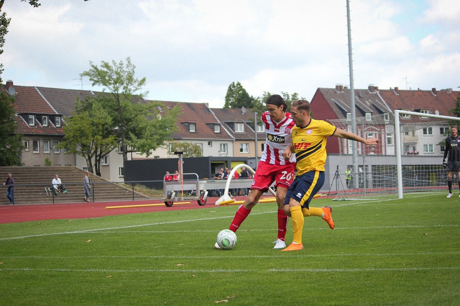 Für die zweite Hälfte wechselte Koschinat acht Spieler aus, ließ nur mit Rehnen, Fritz und Kegel drei Spieler aus der ersten Hälfte auf dem Platz. Auch die Essener wechselten viel. So war es nicht verwunderlich, dass es fast zehn Minuten brauchte, bis sich die Heimmannschaft erstmals an den Kasten von Nicolai Rehnen in Person von Marcel Platzek annäherte, der den Ball aus aussichtsreicher Position nicht selbst abschloss, sondern nochmal zu unpräzise querlegte (54.). Kurz darauf jubelten die Essener, weil Platzek den Ball nach einer Flanke aus kurzer Distanz ins Tor beförderte, allerdings stand er zuvor im Abseits (58.). Mit der neu formierten Mannschaft fiel es der Fortuna in der zweiten Halbzeit etwas schwerer, den Ballbesitzanteil hoch zu halten. Mitte der zweiten Hälfte wussten die Rot-Weißen gefährlichere Dinge mit dem Ball anzustellen. Doch mit Nicolai Rehnen hatte die Fortuna einen optimalen Rückhalt im Tor. Als Aydin allein auf ihn zulief, konnte Rehnen stark parieren und die Fortuna vor einem Gegentor bewahren (70.). Die Fortuna war in der Schlussphase der Partie eher die reagierende Mannschaft. Jedoch strahlte sie bei einem gut gespielten Angriff nochmals etwas Gefahr aus, als Ceylan aus halblinker Position den Schlussmann der Essener prüfte (81.). Viel passierte dann nicht mehr, sodass die Partie torlos mit 0:0 endete.