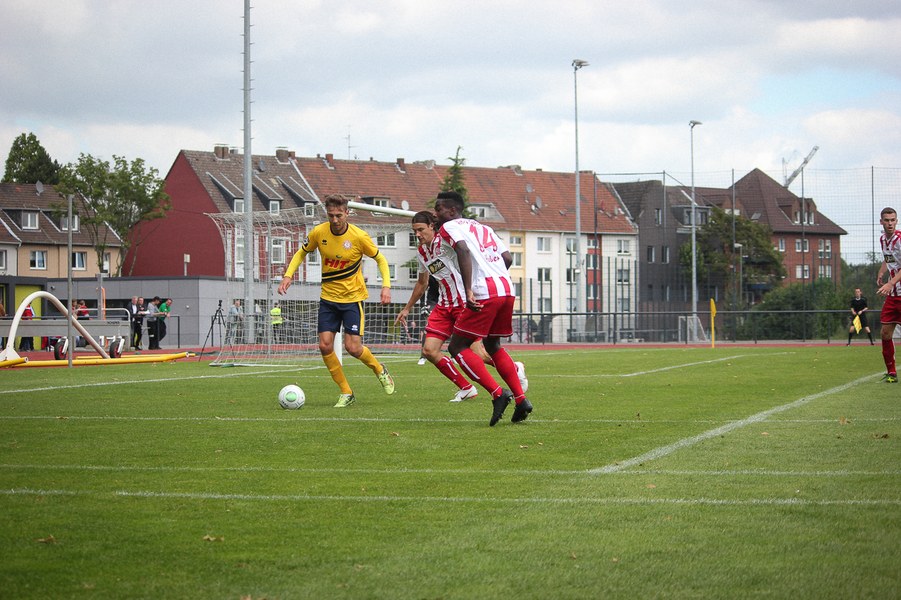 Uwe Koschinat ließ für das zweite Testspiel der Vorbereitung neben den Verletzten Spielern auch Maurice Exslager, Kristoffer Andersen und Moritz Hartmann zu Hause. Dennoch: Die Motivation, die beide Mannschaften ab der ersten Minute auf den Rasen brachten, zeigte, wie viel Lust die Spieler wieder auf Fußball hatten. Die Fortuna kam gut in die Partie, musste aber schon zu Beginn aufpassen, als Platzek's Hereingabe fast auf dem Fuß des mitgelaufenen Freiberger landete (4.). Nach einer knappen Viertelstunde zeichnete sich ein leichtes Chancenplus für die Gastgeber ab, die in kurzer Zeit gleich zwei Mal dem Führungstreffer nah waren (11., 13.). Den ersten Torschuss der Fortuna steuerte Kegel, der sich um die Ordnung im Aufbauspiel bemühte, mit einem satten Schuss bei, der das Tor nur knapp verfehlte (17.). Rot-Weiss Essen störte die Fortuna im Aufbauspiel schon früh und lief hoch an, wodurch sie die Fortuna unter Druck setzten. Nach einer Balleroberung landete die Flanke bei Freiberger, der nur am exzellent parierenden Rehnen scheiterte (20.). Danach kehrte etwas Ruhe in die Partie ein und es gelang der Fortuna, den Ball auch über mehrere Stationen laufen zu lassen. In der Offensive rotierte die Mannschaft von Uwe Koschinat sehr häufig, was die Essener aber zu verteidigen wussten. Das hohe Anlaufen der Heimmanschaft ließ nach einer halben Stunde etwas nach, wodurch der Ballbesitzanteil der Fortuna stieg. Zwingendste Offensivaktion war ein Kopfball von Fritz (35.). Im folgenden Verlauf gelang es keinem der beiden Teams, nennenswerte Offensivgefahr herauf zu beschwören. Somit ging es mit 0:0 in die Pause.