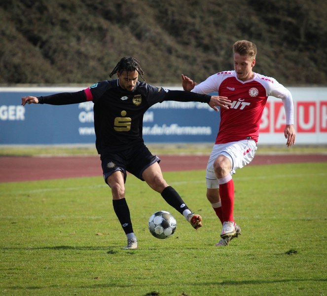 Nach kurzer Anreise spielte die Fortuna heute beim Nachbarn Bonner SC. In der Startelf nahm Cheftrainer Alexander Ende im Vergleich zum vergangenen Spiel einige Änderungen vor: Aufgrund einer Verletzung stand Dominik Lanius heute nicht im Kader, dafür kam Löhden nach seiner Gelbsperre zurück in die Startelf. Außerdem fehlte Poggenberg, Försterling und Salman nahmen zunächst auf der Bank Platz. Najar, Itter und Ubabuike starteten dafür von Beginn an. Bei Sonnenschein pfiff Schiedsrichter Koj die Partie um 14:02 Uhr an. Die erste Chance gehörte den Bonnern. Verteidiger Lippert zog aus gut 30 Metern einfach mal ab und setzte dabei das Spielgeerät deutlich über das Tor. Dies sollte in der ersten Hälfte die nennenswerteste Aktion der Gastgeber bleiben. In der Anfangsphase war direkt zu erkennen, dass das Spiel sehr zweikampfbetont werden sollte. So holte sich Güler bereits in der 13. Minute nach einem Foul an Itter die erste gelbe Karte des Spiels ab. Bonn versteckte sich nicht in der eigenen Hälfte und stellte sich hinten rein, sondern versuchte die Fortuna früh zu stören. Richtig brenzlig wurde es direkt im Anschluss im Bonner Strafraum. Owusu setzte sich in der Mitte durch und knallte den Ball aus fast 25 Metern an die Latte (14.). Bonn gestaltete ihr eigenes Spiel insbesondere mit Hilfe von weit nach vorne geschlagenen Bällen, die die Fortuna bislang aber problemlos klären konnte oder sie stellten die Rheinlöwen ins Abseits. Nach einer Abseitsposition im Fortuna Strafraum schlug Rauhut den Ball per Freistoß in Richtung des Bonner Strafraums. Najar legte von dort aus auf Ubabuike ab, der schlenzte den Ball gefühlvoll unten links in den Kasten des Bonner SC und erzielte dadurch das 1:0 für die Fortuna (26.). Nach dem Rückstand änderten die Bonner ihren Spielstil nicht und agierten weiterhin mit langen Bällen. Vor allem Löhden konnte so gut wie jedes Kopfballduell für sich gewinnen und behielt somit die Lufthoheit. Das von Zweikämpfen geprägte Spiel führte in der 44. Minute durch ein Foul am Bonner Sechzehner zu einer aussichtsreichen Freistoßposition für die Kölner. Ochojski legte sich den Ball in zentraler Lage knapp an der Strafraumgrenze zurecht und verwandelt den Standard direkt, indem er unten rechts an Keeper Hupe vorbeischob. Ochojskis zweites Saisontor war somit fast eine Kopie seines Treffers gegen die Reserve des 1. FC Köln. Kurz danach pfiff der Schiedsricher zur Halbzeit.