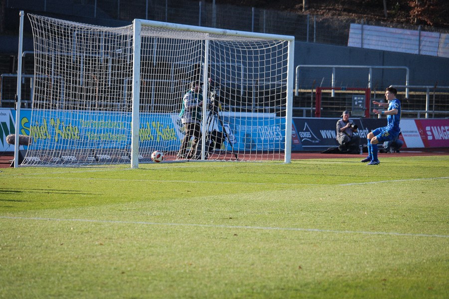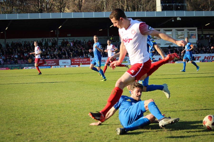 Die Fortuna war, ebenso wie im vergangenen Spiel gegen den FSV Zwickau bemüht, sich von Beginn an die höheren Spielanteile zu sichern. So fand das Team von Trainer Kaczmarek in der 4. Spielminute erstmals den Weg in Richtung Tor. Maik Kegel hob den Ball in den Sechzehner, wo Michael Eberwein sehenswert per Fallrückzieher zurücklegte. Ehe der Ball jedoch bei Benjamin Pintol ankam, funkte Torwart Jasmin Fejzic dazwischen. Auch Maik Kegel (11.) und Robin Scheu (14.) fanden ihren Meister in Fejzic. Die Distanzschüsse beider Fortunen lenkte der Keeper zur Ecke.