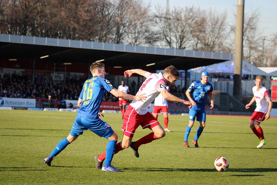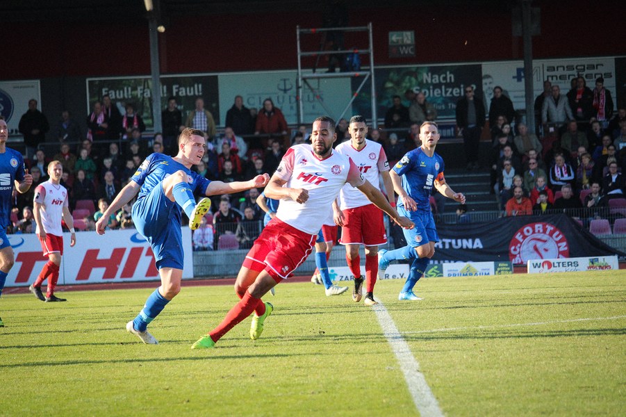So spielte die Fortuna: Rehnen - Ernst, Kyere, Fritz, Uaferro, Bröker - Brandenburger (70. Andersen), Kegel, Eberwein - Pintol (61. Dahmani), Scheu (72. Anatole)