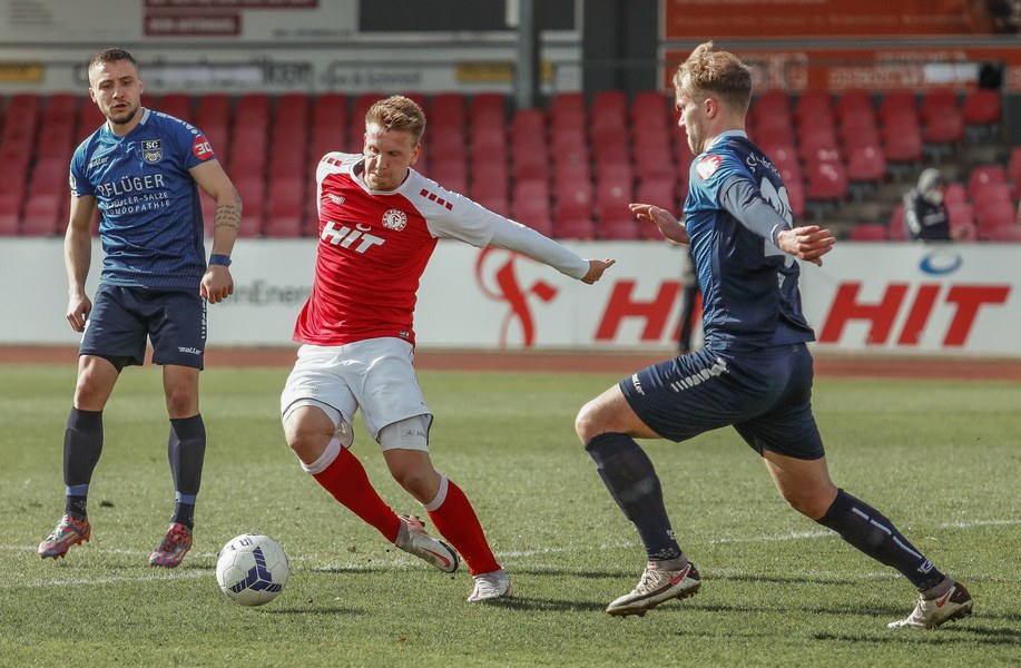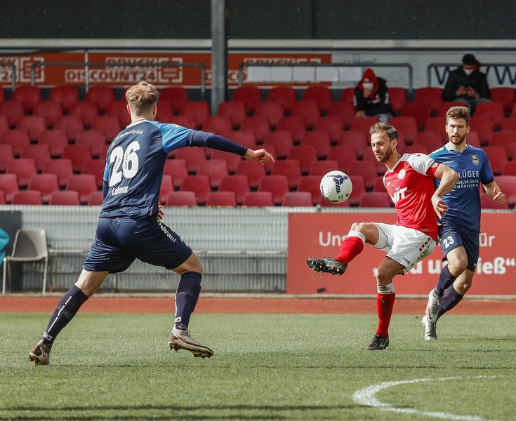 Pünktlich zum Spielstart überfiel das Südstadion ein kurzer, jedoch deftiger Regenschauer. Auf das Feld geführt wurde das Team von Alexander Ende von Roman Prokoph. Abwehrhüne Jannik Löhden stand den Südstädtern aufgrund seiner zehnten gelben Karte nicht zur Verfügung. In der Abwehrzentrale wurde er durch Kai Försterling ersetzt, der seinen ersten Startelfeinsatz feierte und eine beachtliche Leistung zeigte. Auf der linken Außenbahn startete Dan-Patrick Poggenberg für Francis Ubabuike. Beim Auswärtsspiel gegen RW Essen startete noch Suheyel Najar. Für diesen begann heute Hamza Salman.